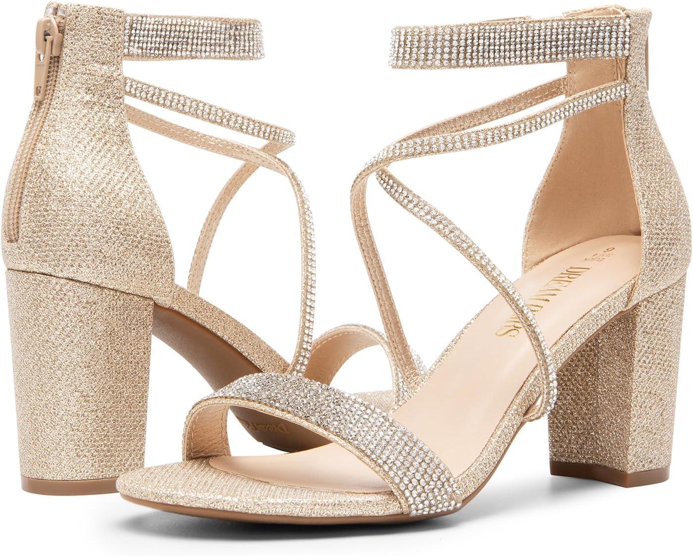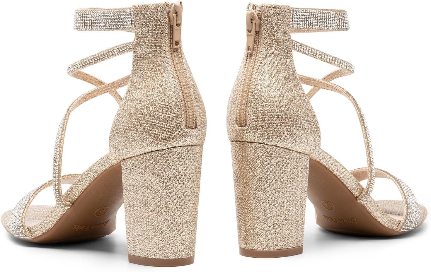 DREAM PAIRS Womens Chunkle(Gold/Rhinestone)