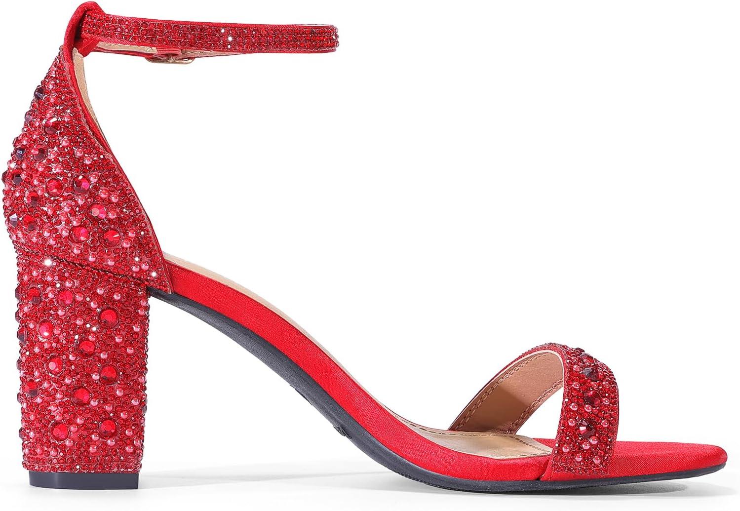 DREAM PAIRS Womens Chunkle(Red/Rhinestone)