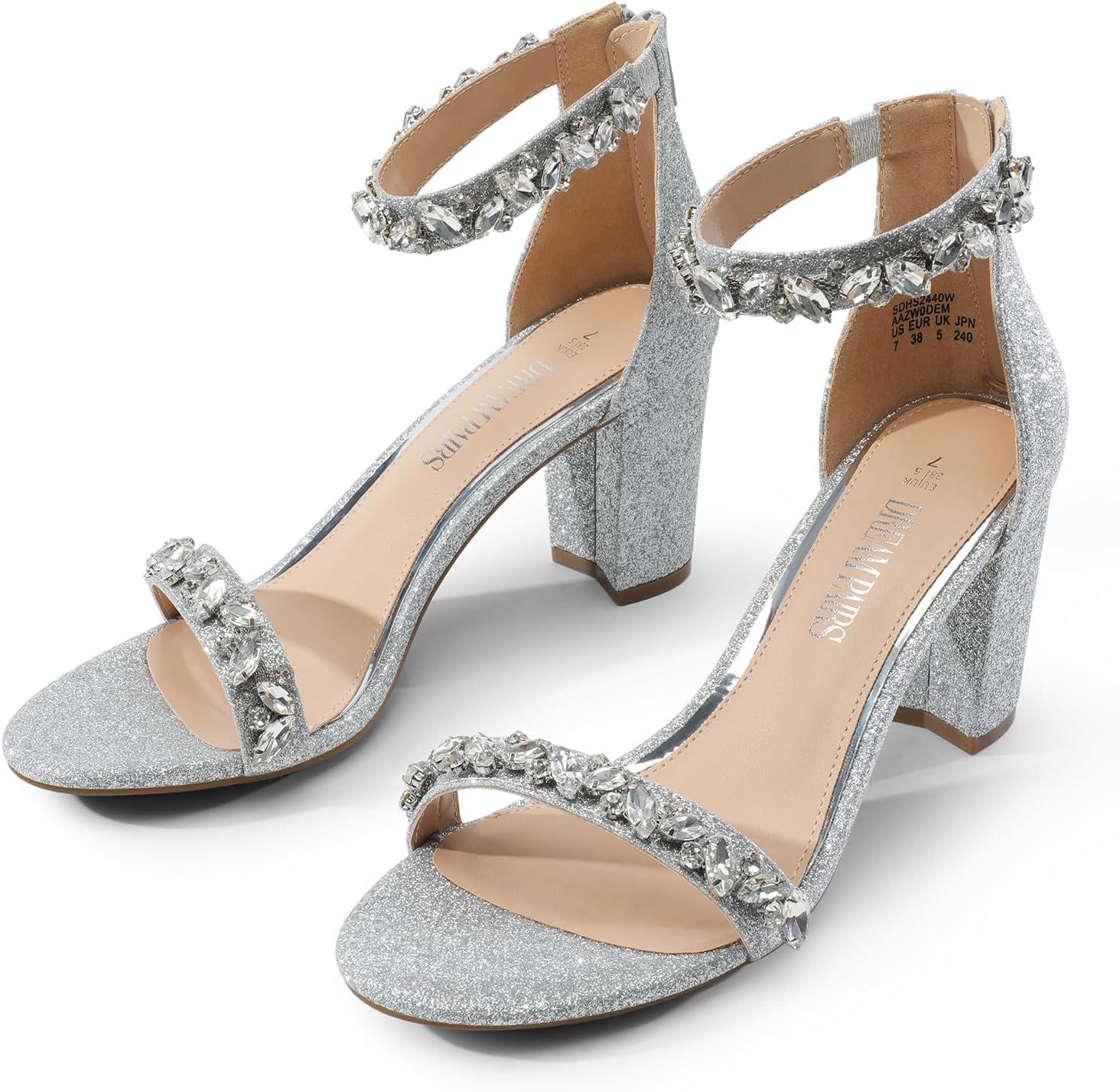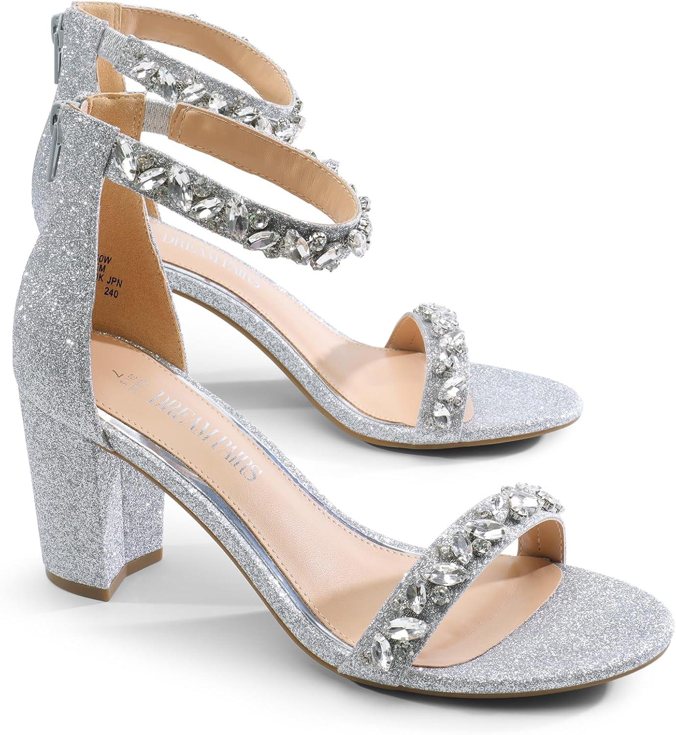 DREAM PAIRS Womens Chunkle(Silver/Rhinestone)