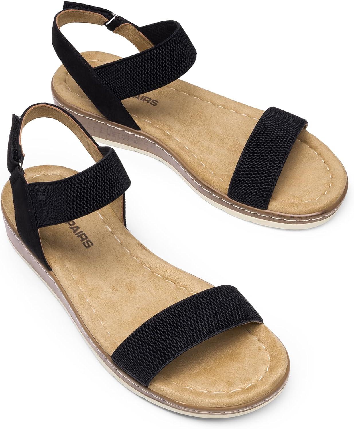 DREAM PAIRS Womens Espadrilles Ankle Stretch Elastic Strap Open Toe Wedges Flats Sandals(Black)