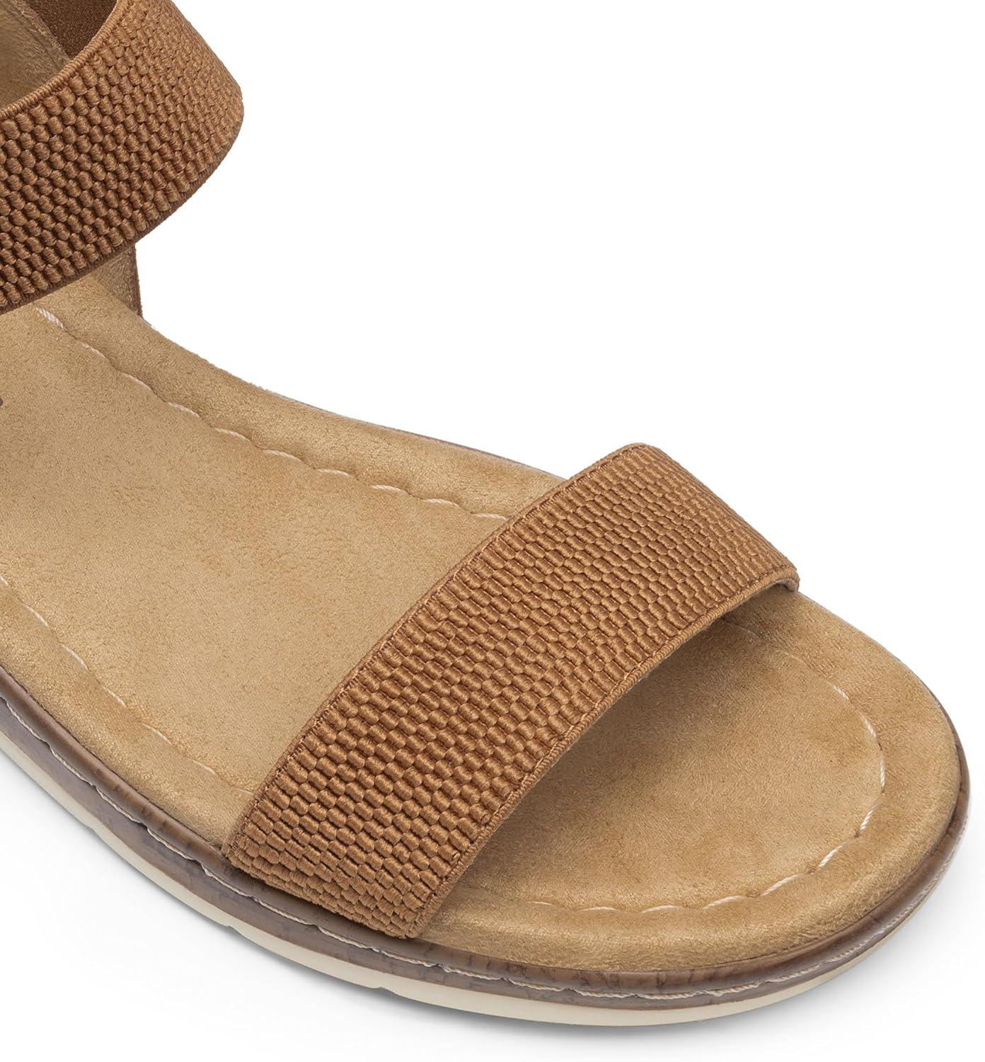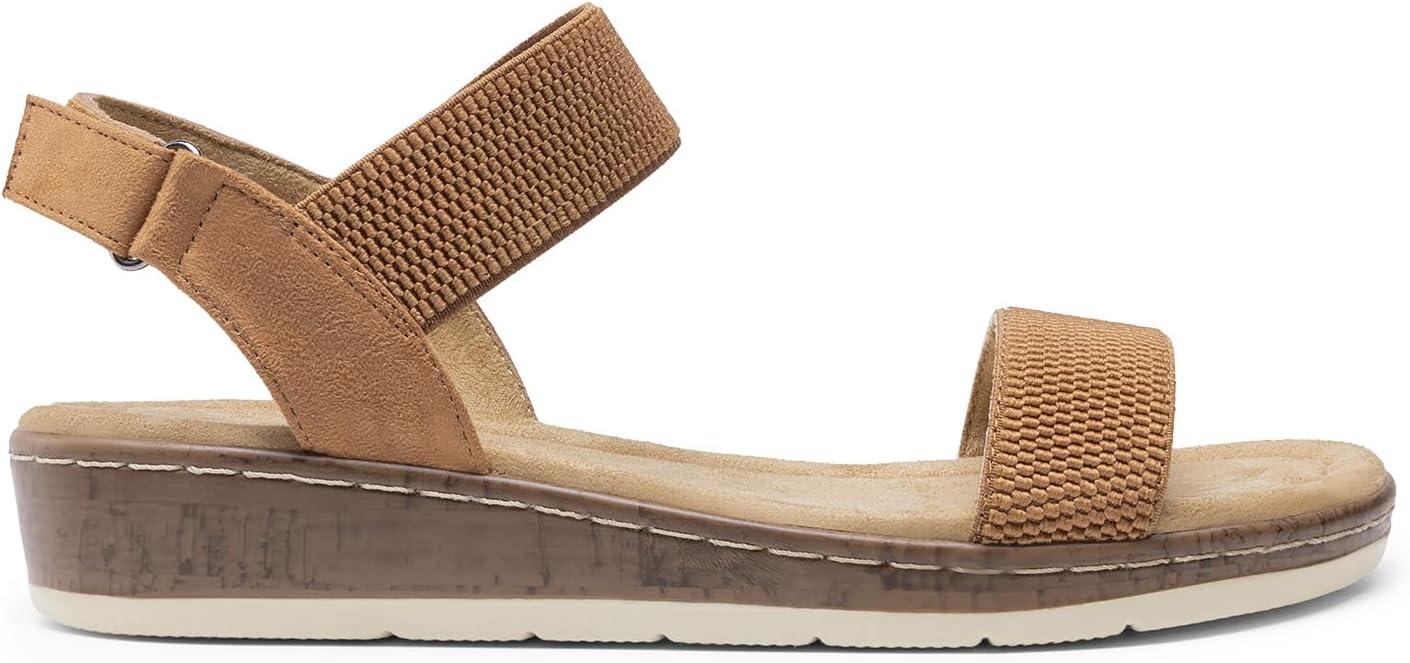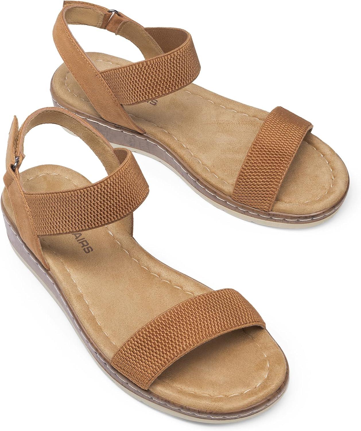 DREAM PAIRS Women’s Comfortable Dressy Cork Low Wedge Heels Cute Summer One Band Casual Flat Sandals with Adjustable Ankle Strap(Camel)