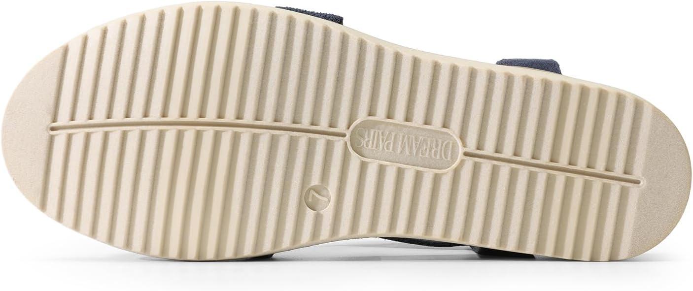 DREAM PAIRS Women’s Comfortable Low Wedge Sandals, Open Toe Slip On Strappy Flat Sandals Light-weight Summer Shoes(Navy)