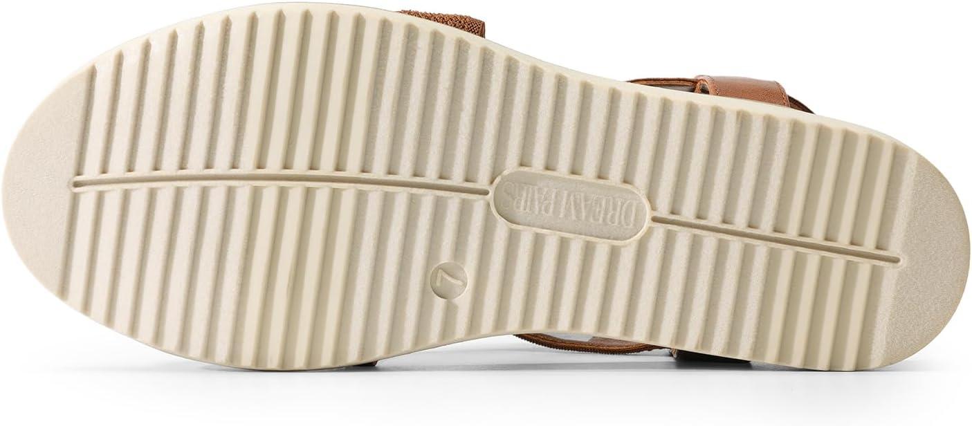 DREAM PAIRS Women’s Comfortable Dressy Cork Low Wedge Heels Cute Summer One Band Casual Flat Sandals with Adjustable Ankle Strap(Camel)