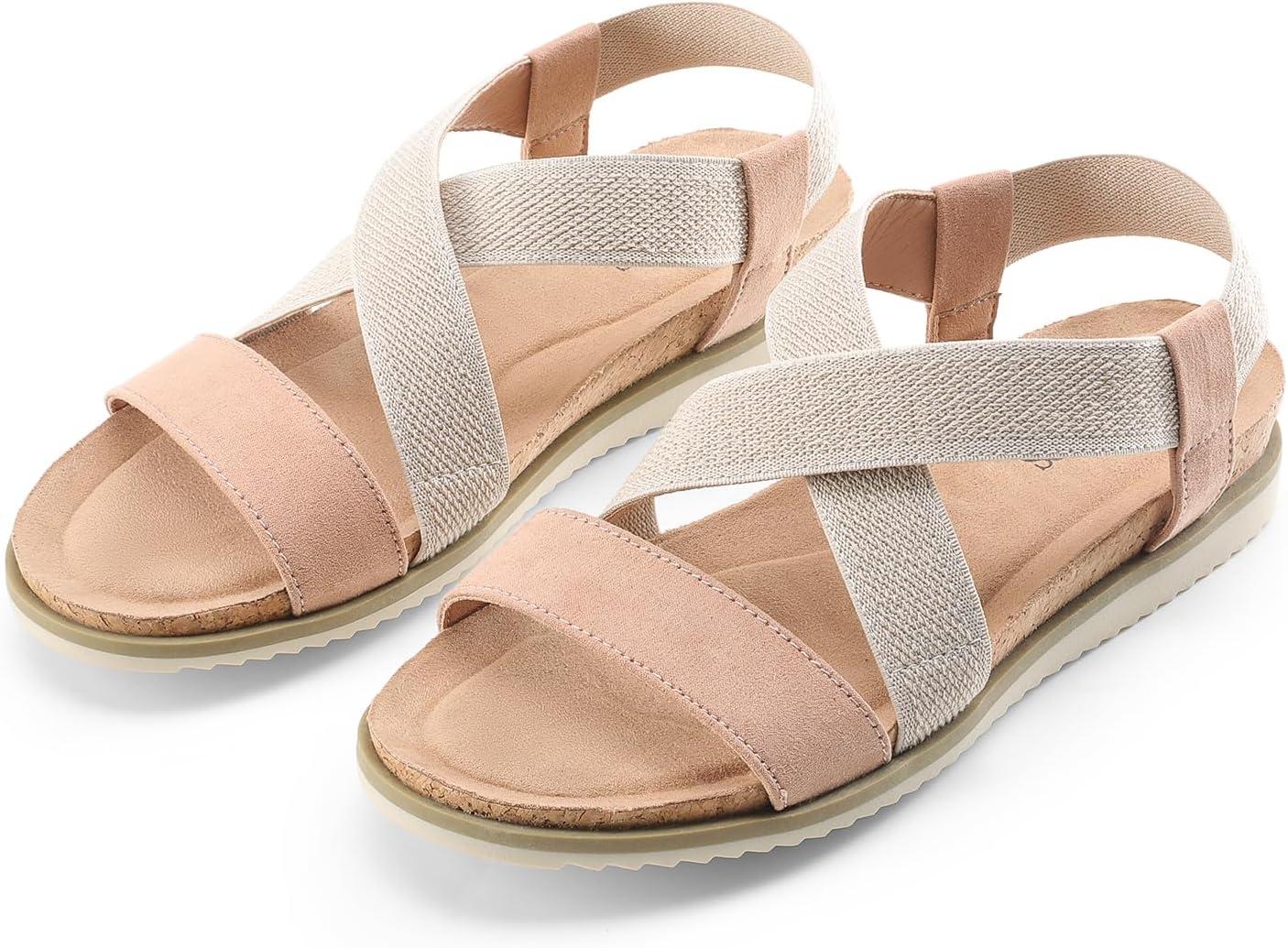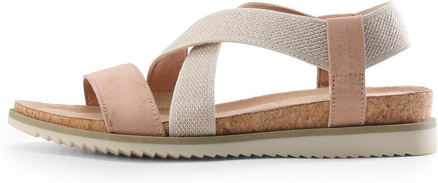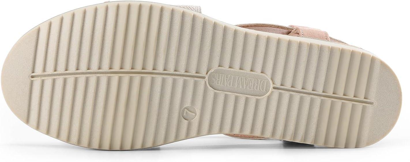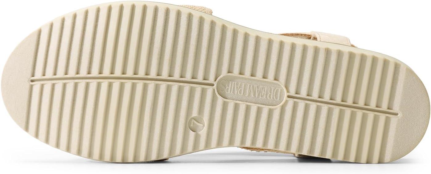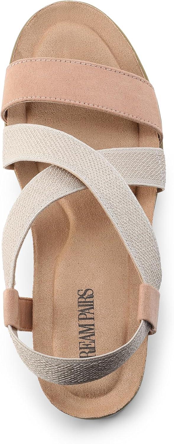 DREAM PAIRS Women’s Comfortable Low Wedge Sandals, Open Toe Slip On Strappy Flat Sandals Light-weight Summer Shoes(Nude)