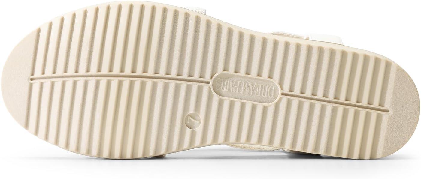 DREAM PAIRS Women’s Comfortable Low Wedge Sandals, Open Toe Slip On Strappy Flat Sandals Light-weight Summer Shoes(Nude/White)