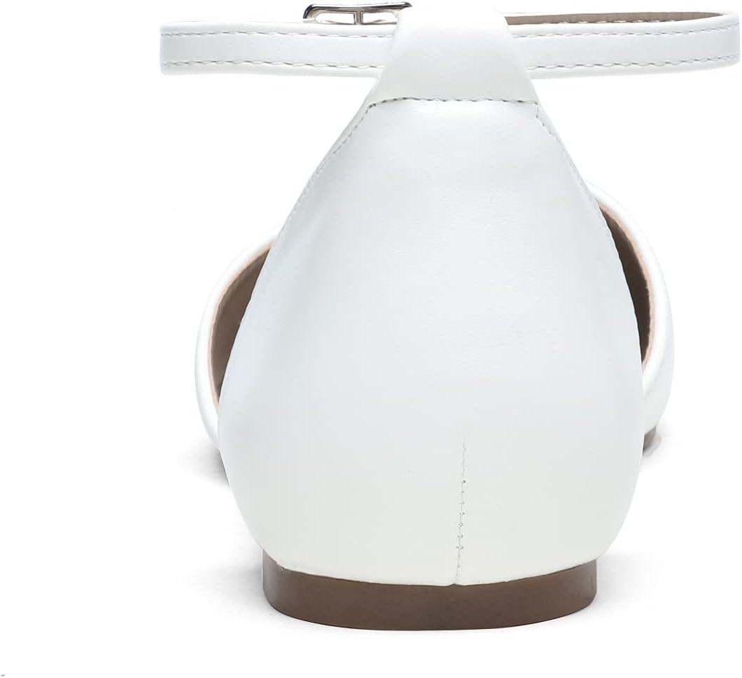 DREAM PAIRS Flapointed Women’s Casual D’Orsay Pointed Plain Ballet Comfort Soft Slip On Flats Shoes(White/Pu)