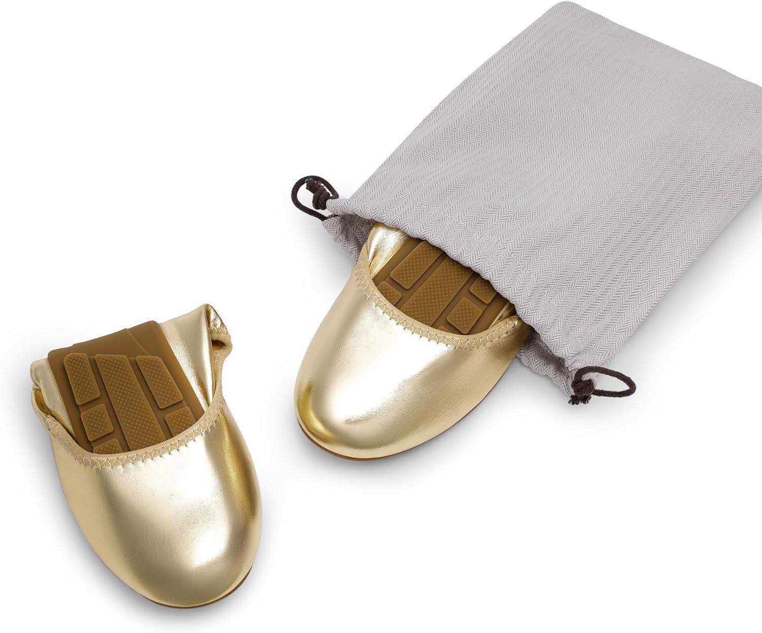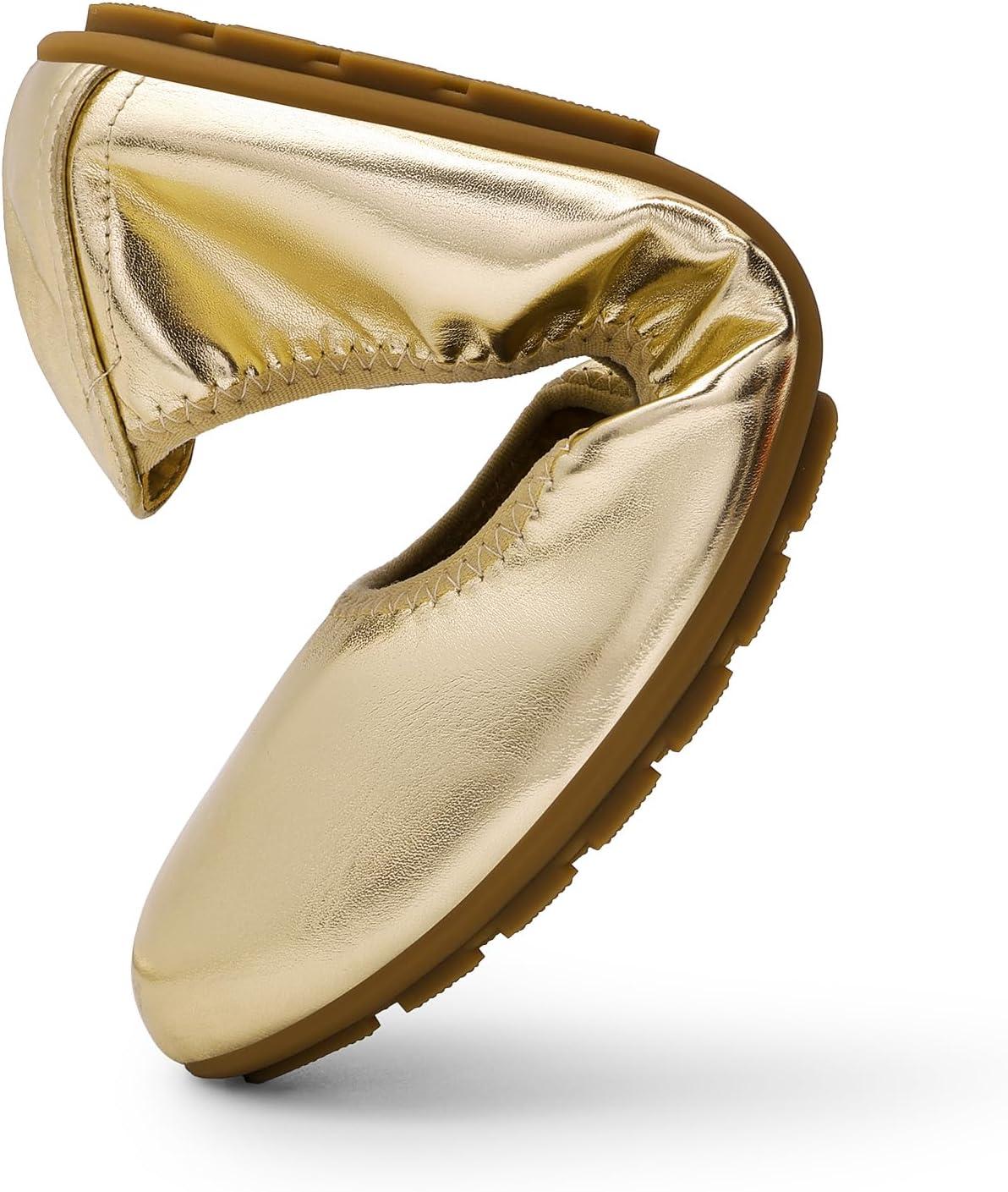 DREAM PAIRS Women’s Ballet Flats Foldable Round Toe Dressy Comfortable Slip On Dress Shoes(Gold)