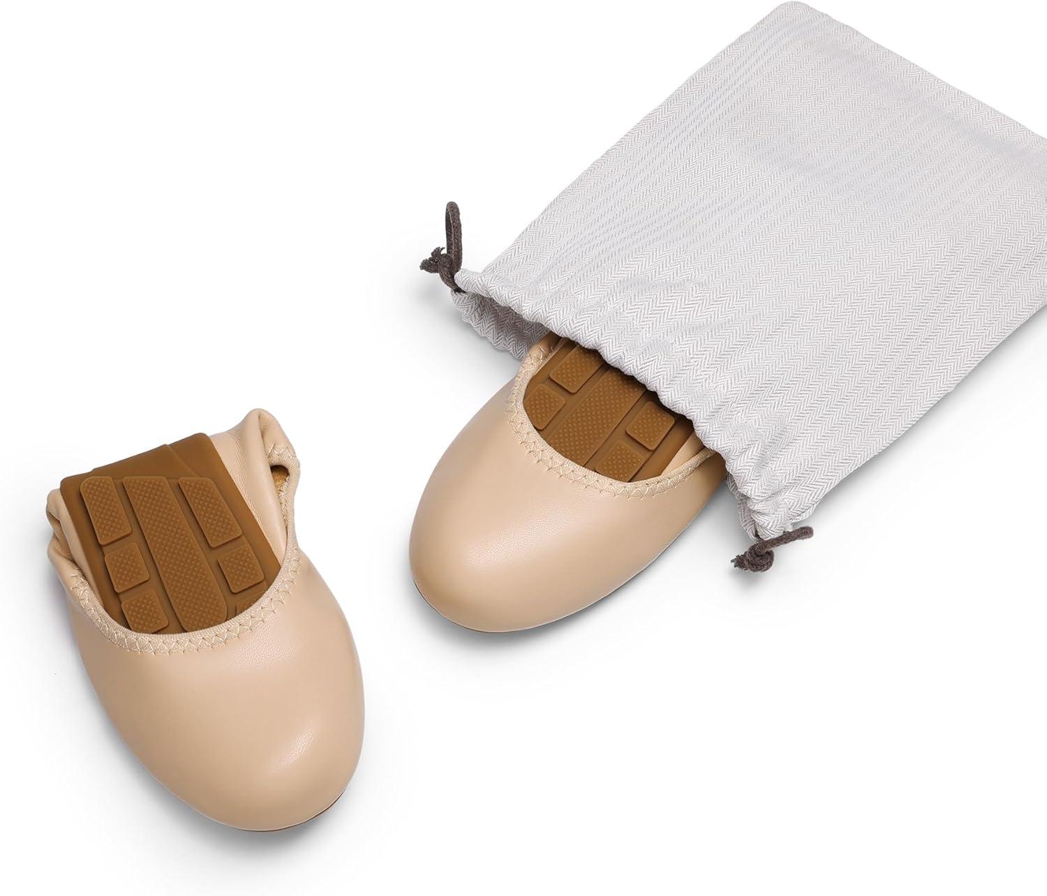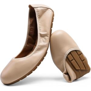 DREAM PAIRS Women’s Ballet Flats Foldable Round Toe Dressy Comfortable Slip On Dress Shoes(Nude)