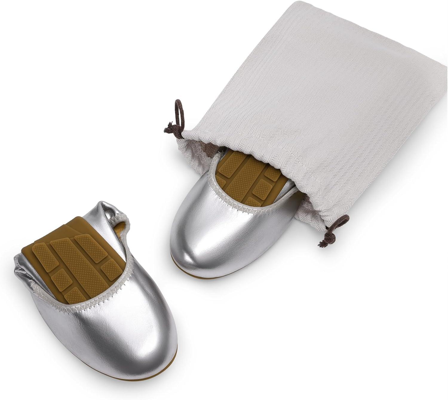 DREAM PAIRS Women’s Ballet Flats Foldable Round Toe Dressy Comfortable Slip On Dress Shoes(Silver)