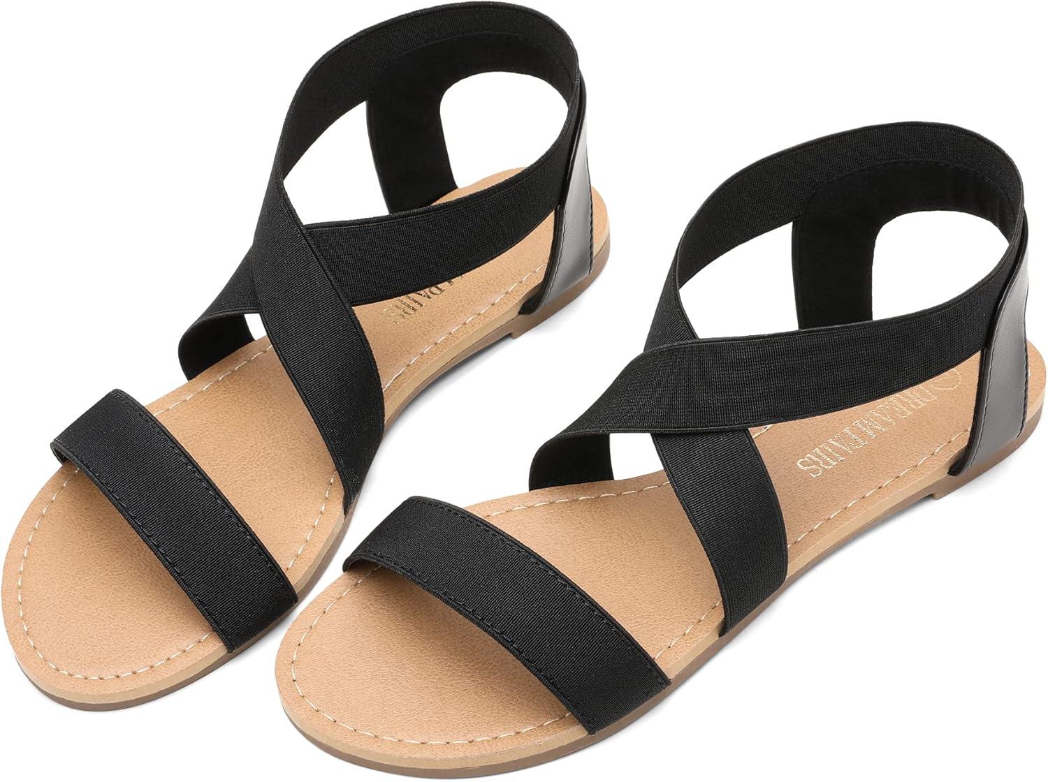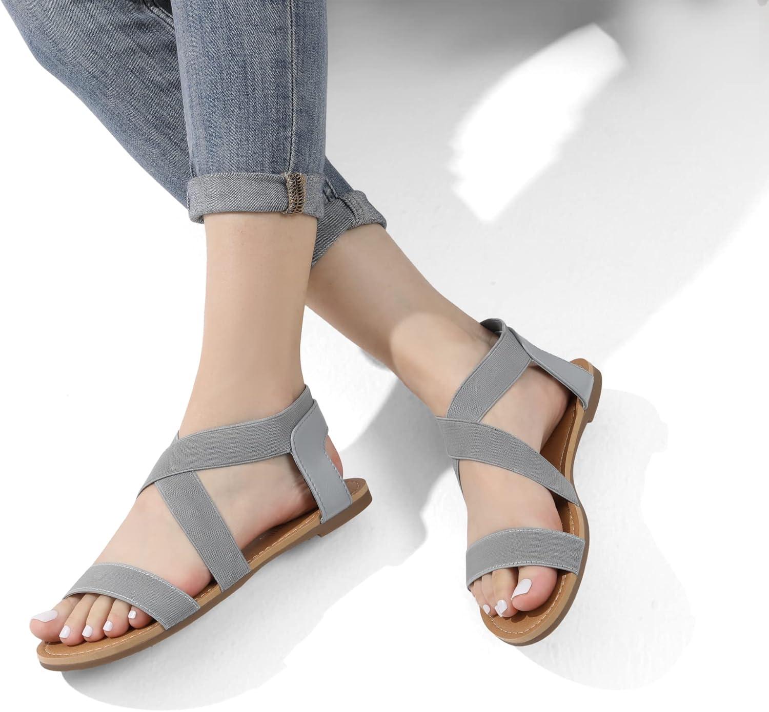 DREAM PAIRS Womens Espadrilles Ankle Stretch Elastic Strap Open Toe Wedges Flats Sandals(Black)
