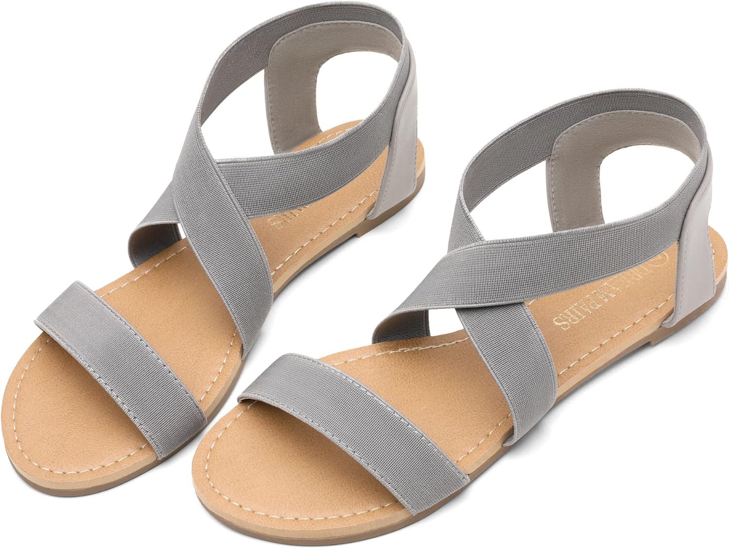 DREAM PAIRS Womens Espadrilles Ankle Stretch Elastic Strap Open Toe Wedges Flats Sandals(Brown)