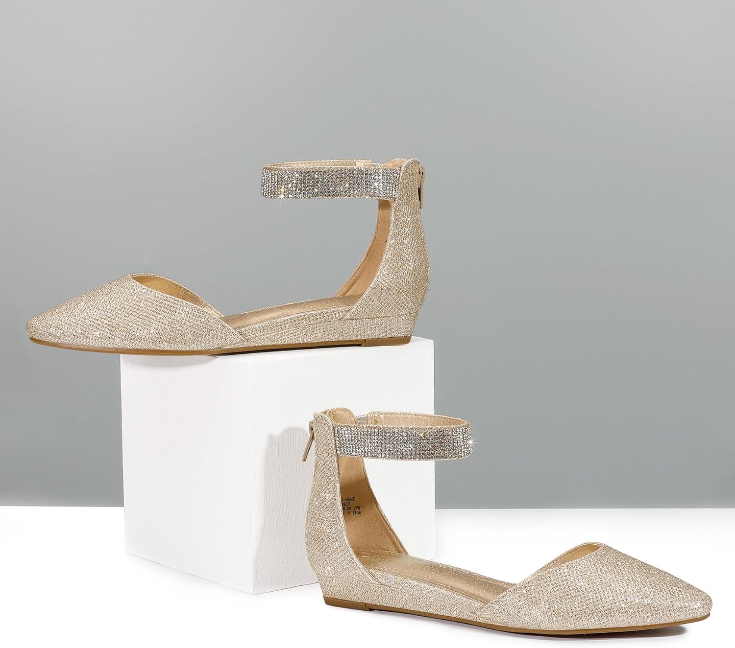 DREAM PAIRS Flapointed Women’s Casual D’Orsay Pointed Plain Ballet Comfort Soft Slip On Flats Shoes(Gold/Glitter)