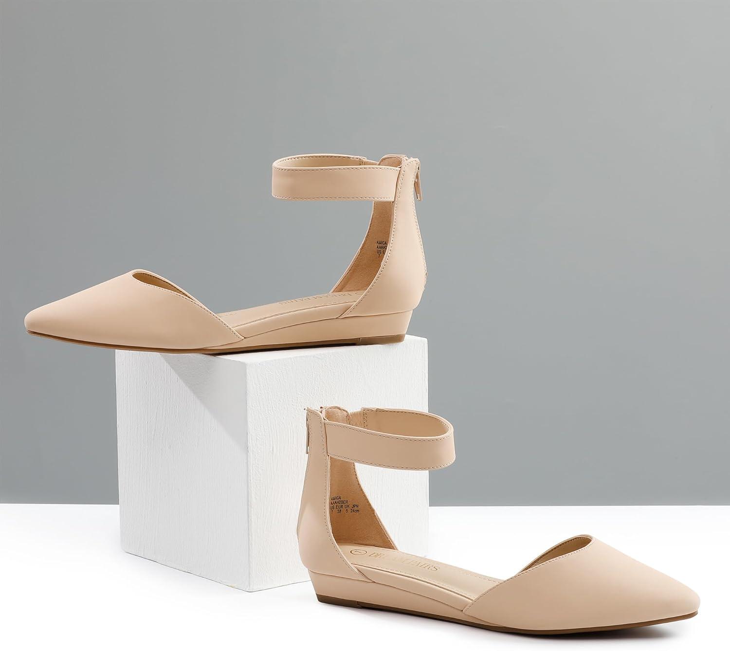 DREAM PAIRS Flapointed Women’s Casual D’Orsay Pointed Plain Ballet Comfort Soft Slip On Flats Shoes(Nude/Pu)