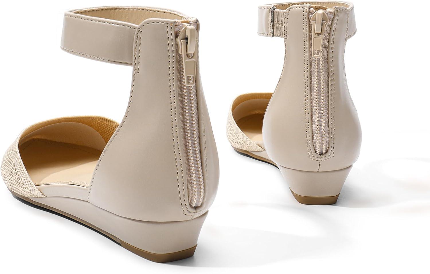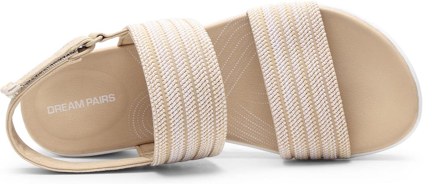 DREAM PAIRS Women’s Walking Sandals Lightweight Soft Footbed Low Wedge Comfort Indoor Outdoor Flat Sandals(Beige)