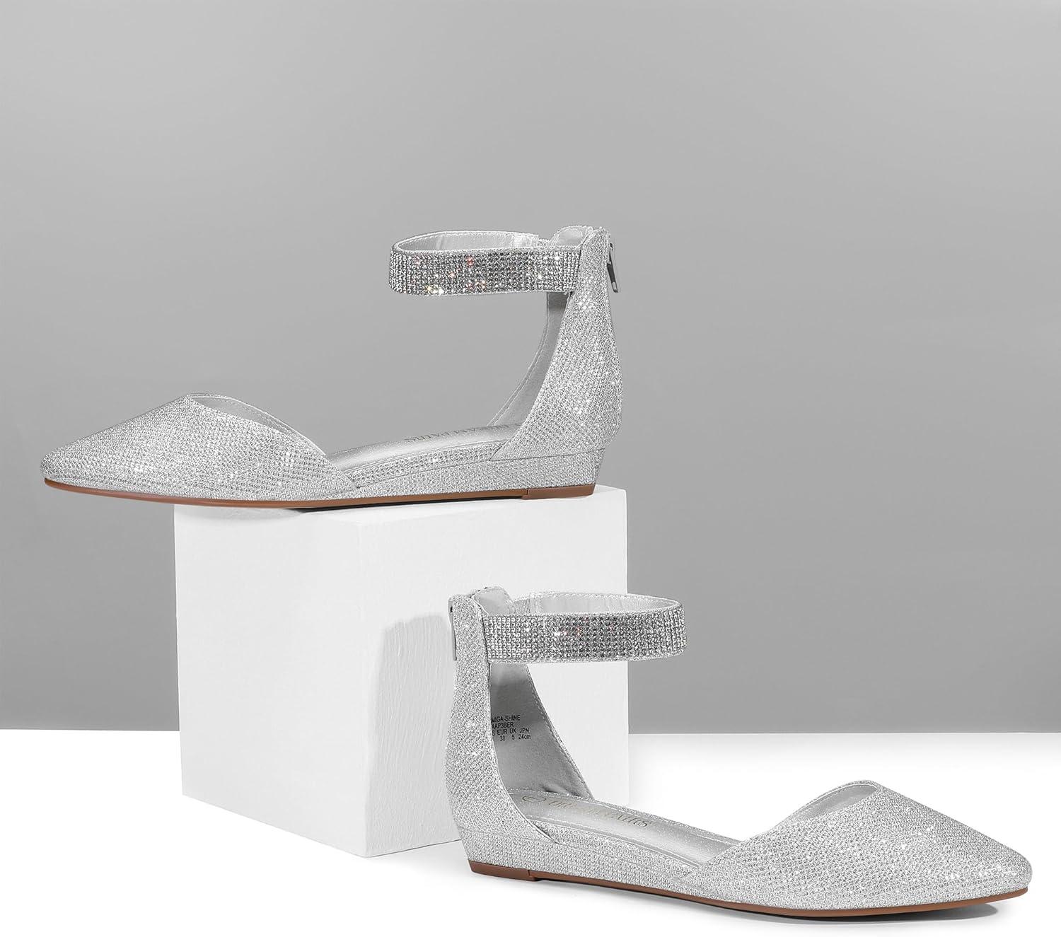 DREAM PAIRS Flapointed Women’s Casual D’Orsay Pointed Plain Ballet Comfort Soft Slip On Flats Shoes(Silver/Glitter)