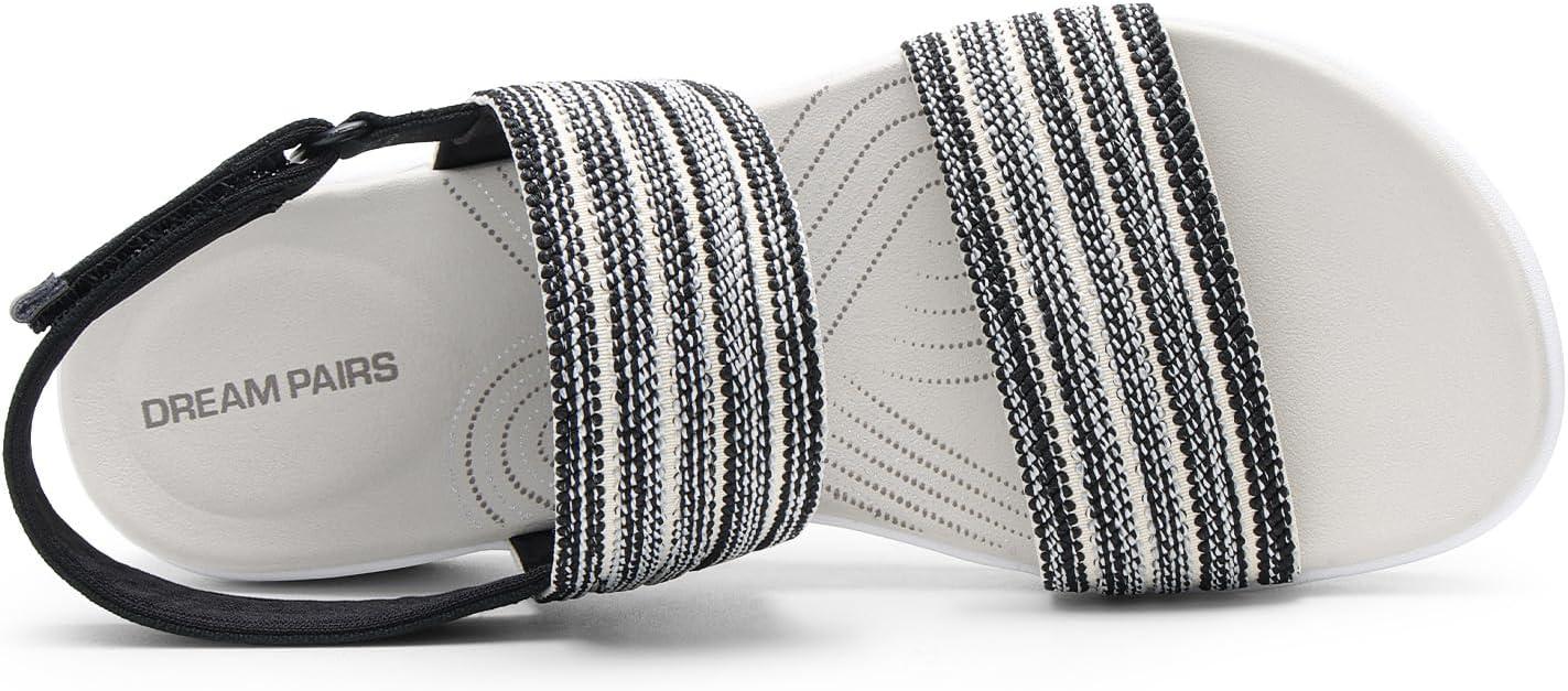 DREAM PAIRS Women’s Walking Sandals Lightweight Soft Footbed Low Wedge Comfort Indoor Outdoor Flat Sandals(Black)