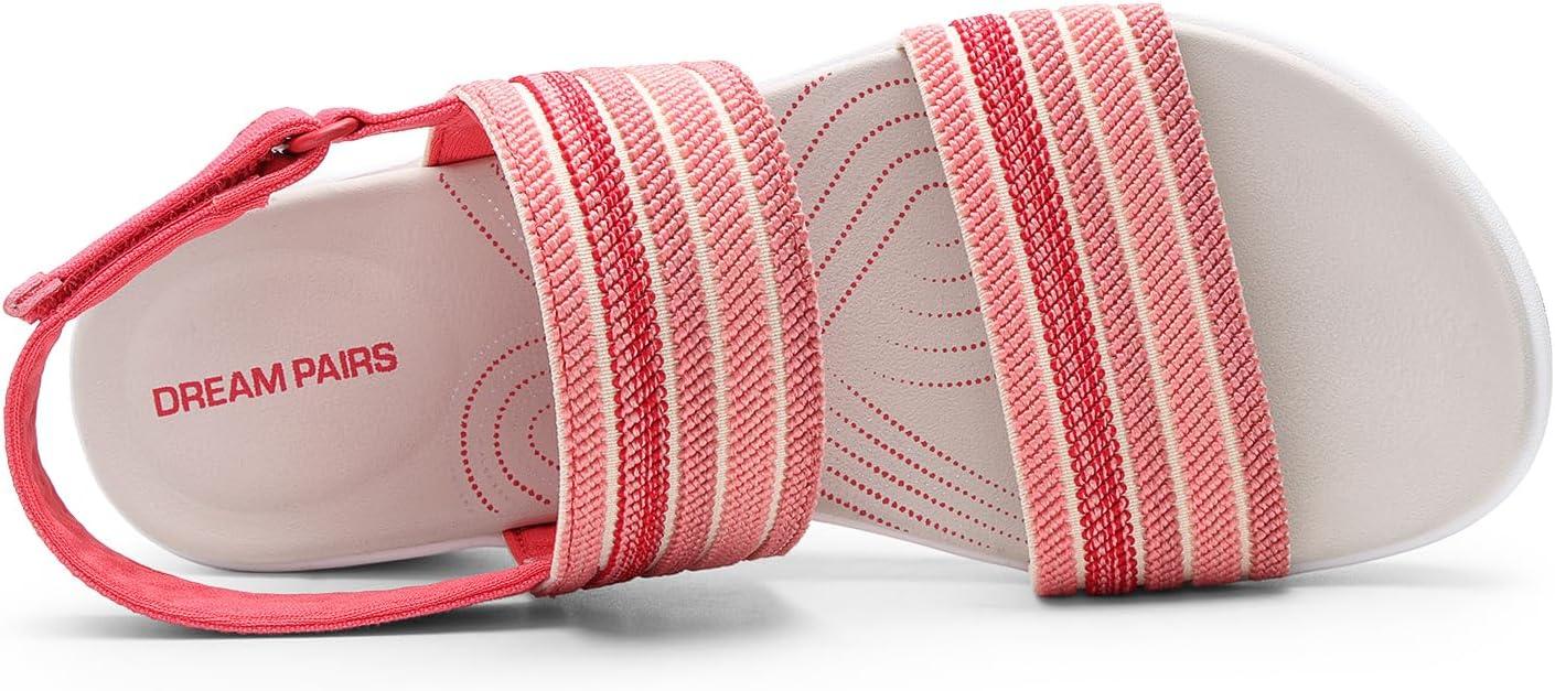 DREAM PAIRS Women’s Walking Sandals Lightweight Soft Footbed Low Wedge Comfort Indoor Outdoor Flat Sandals(Red)