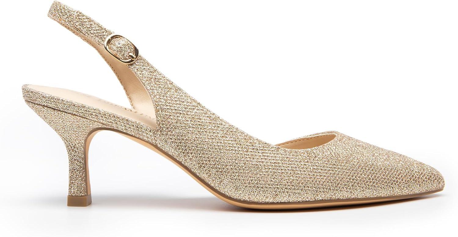 DREAM PAIRS Women’s Kitten Heel Slingback Pointed Closed Toe Low Stiletto Heels Dress Bridal Elegant Wedding Pumps Shoes(Gold-glitter)