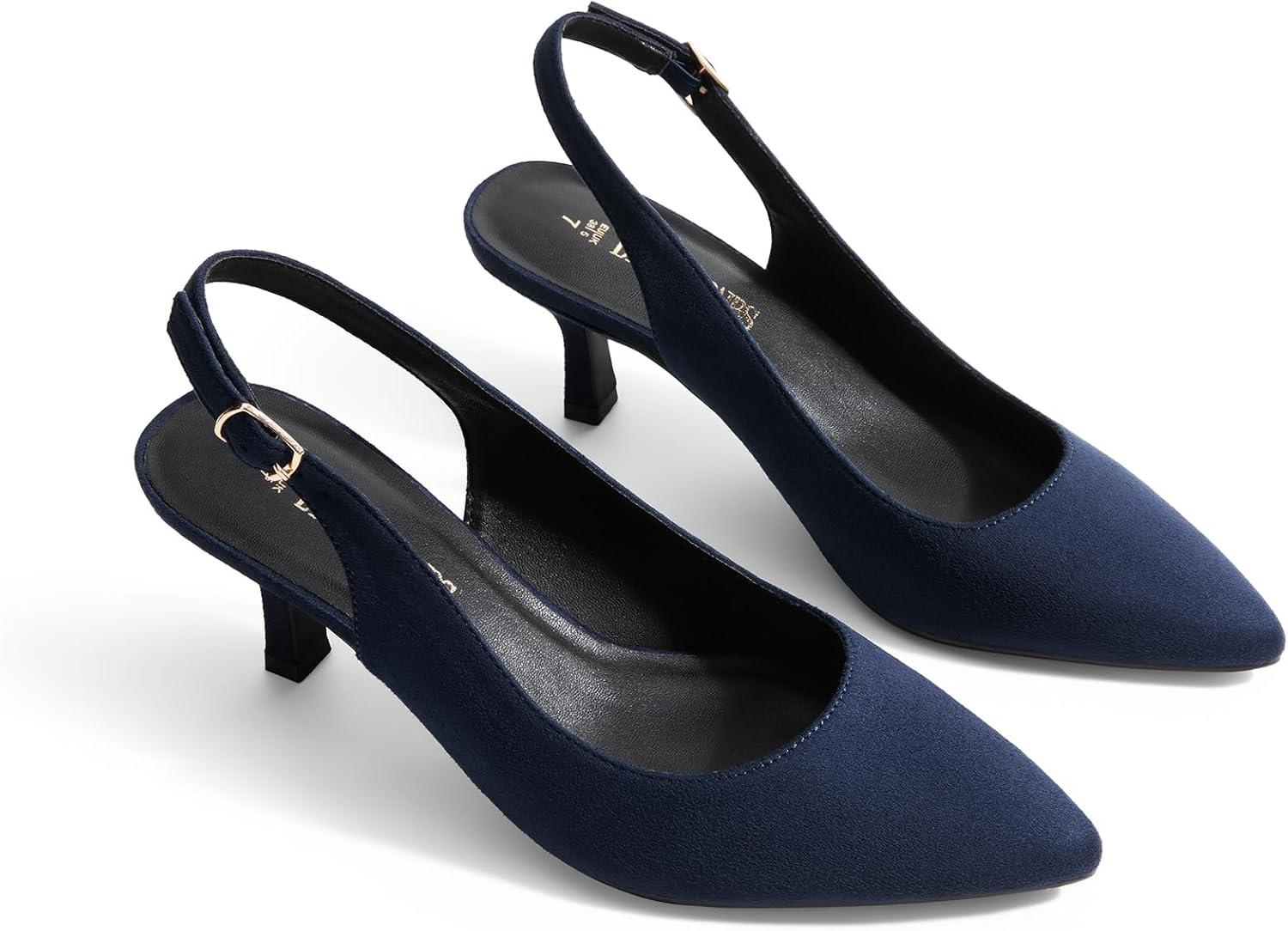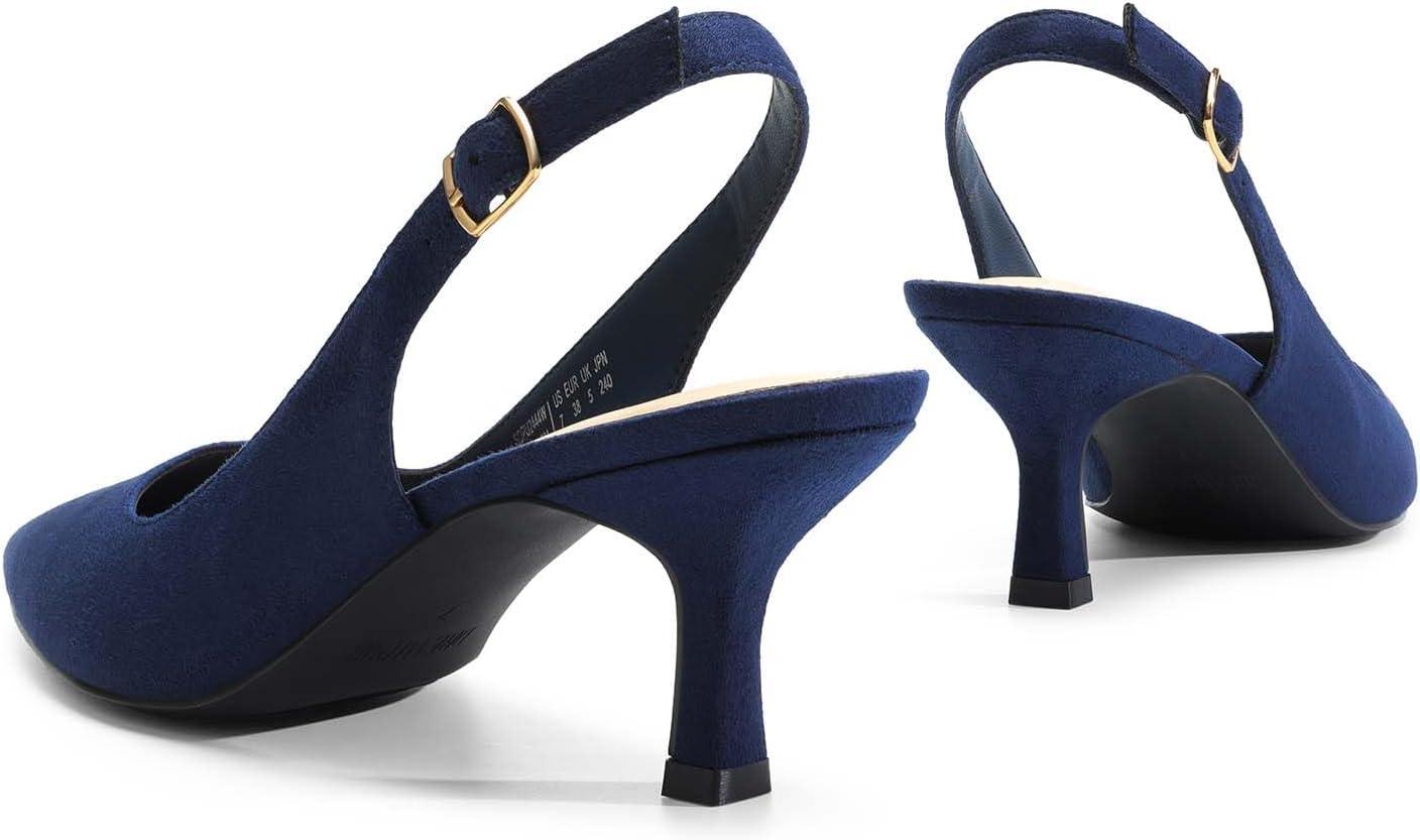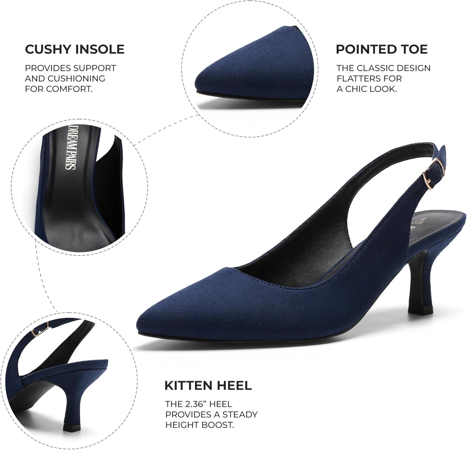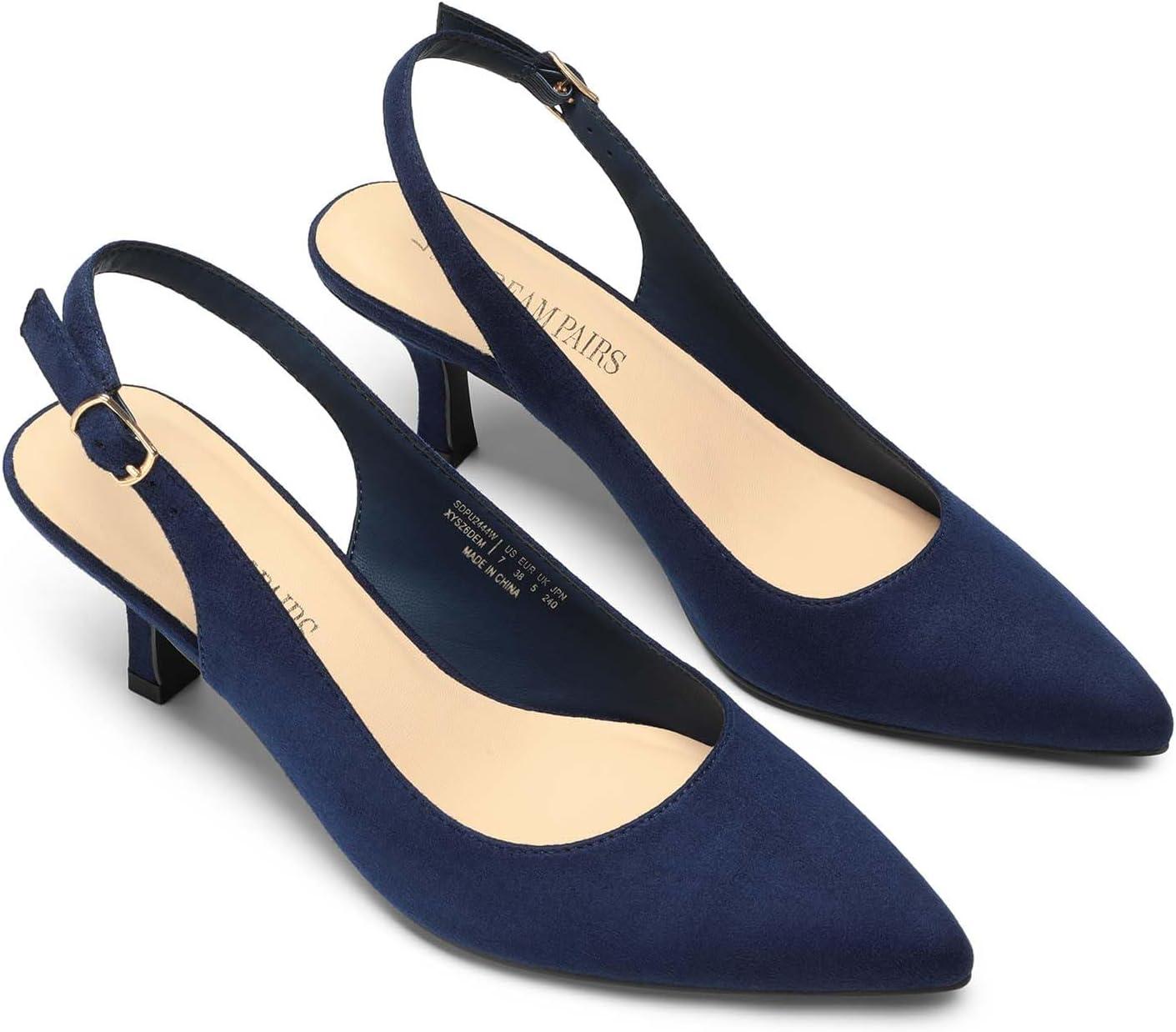 DREAM PAIRS Women’s Kitten Heel Slingback Pointed Closed Toe Low Stiletto Heels Dress Bridal Elegant Wedding Pumps Shoes(Navy-suede)