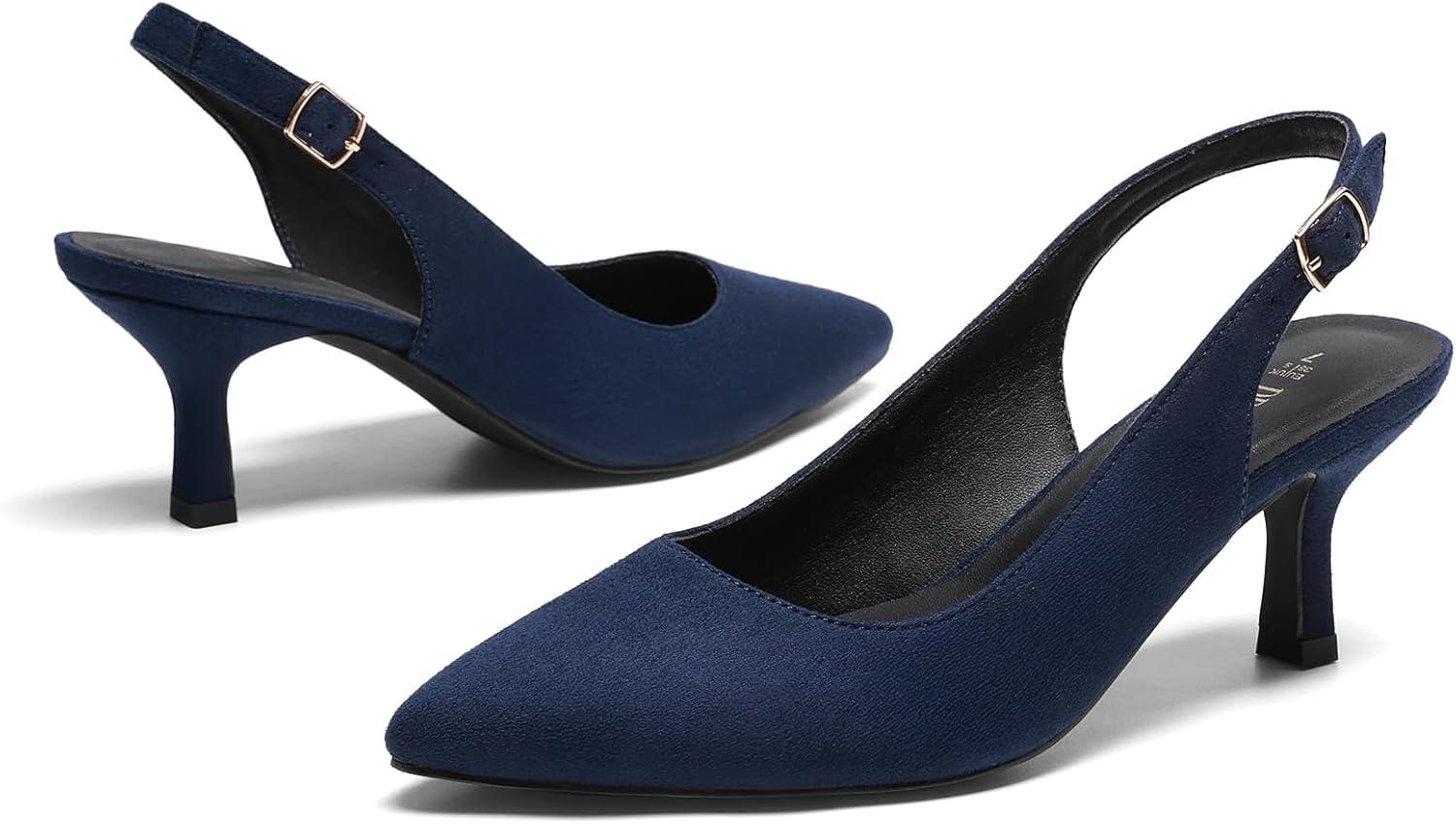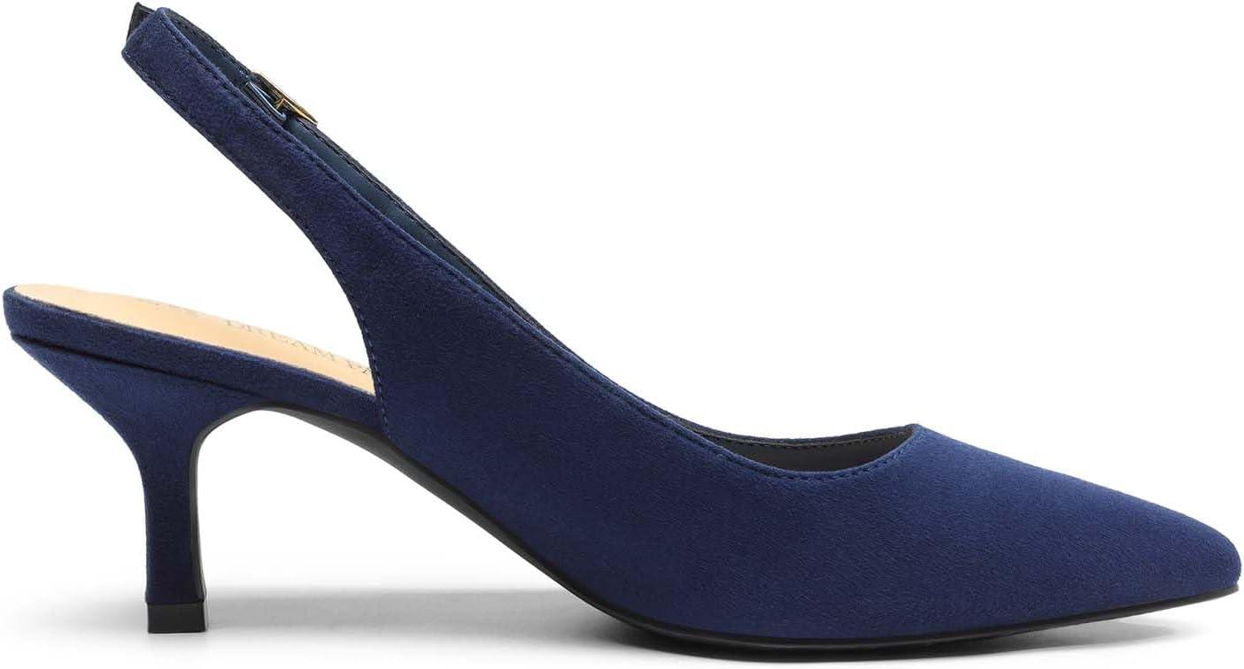 DREAM PAIRS Women’s Kitten Heel Slingback Pointed Closed Toe Low Stiletto Heels Dress Bridal Elegant Wedding Pumps Shoes(Navy-suede-1)