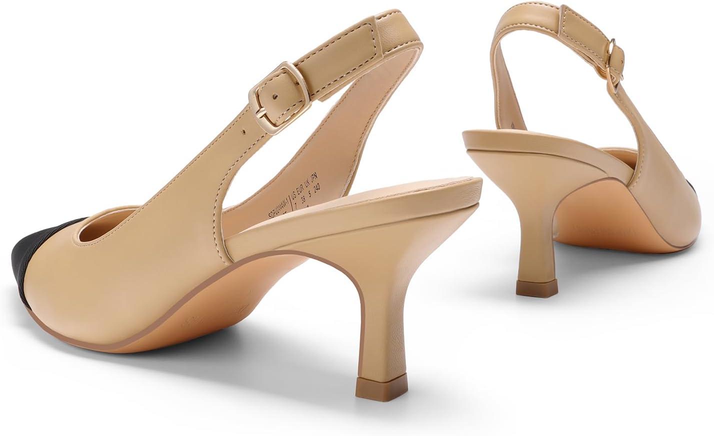 DREAM PAIRS Women’s Kitten Heel Slingback Pointed Closed Toe Low Stiletto Heels Dress Bridal Elegant Wedding Pumps Shoes(Nude/Black)