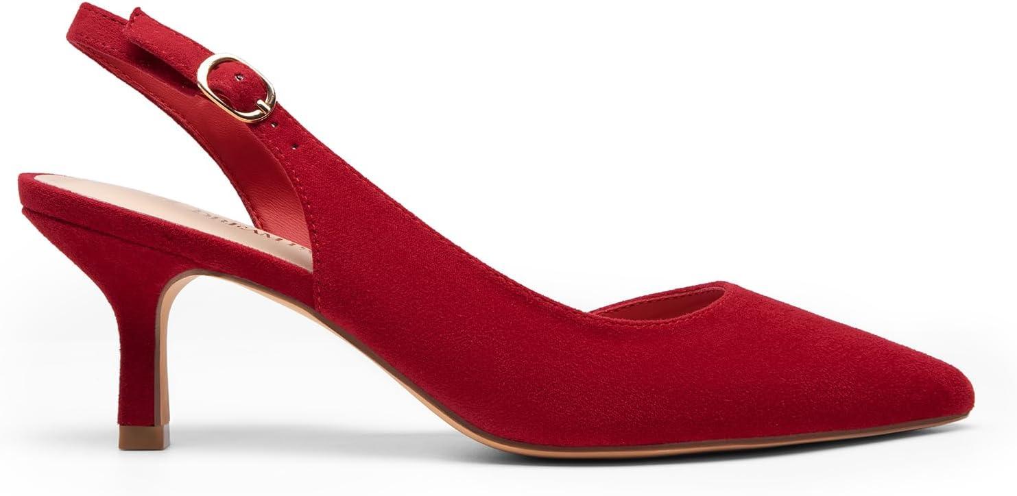 DREAM PAIRS Women’s Kitten Heel Slingback Pointed Closed Toe Low Stiletto Heels Dress Bridal Elegant Wedding Pumps Shoes(Red-suede)