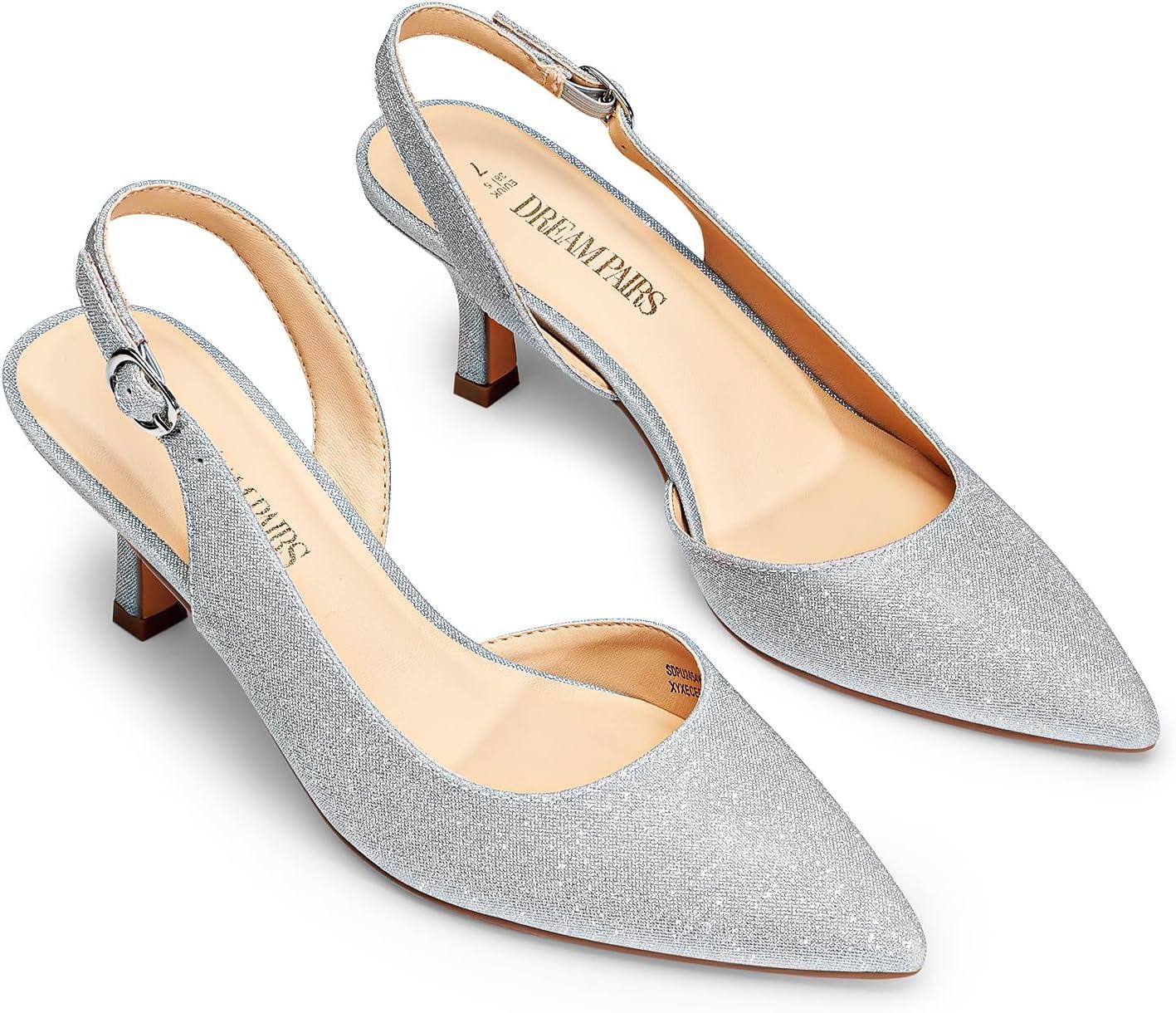 DREAM PAIRS Women’s Kitten Heel Slingback Pointed Closed Toe Low Stiletto Heels Dress Bridal Elegant Wedding Pumps Shoes(Silver-glitter)