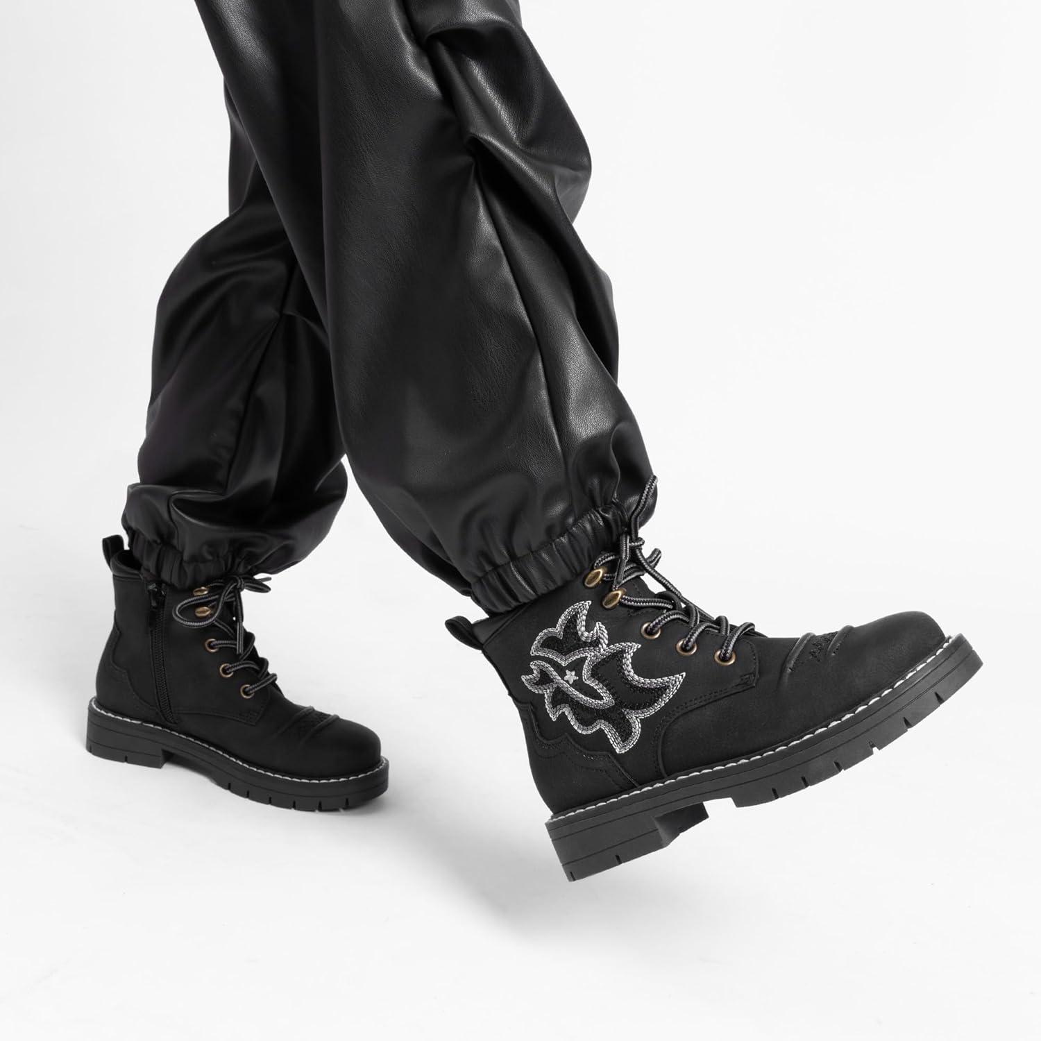 DREAM PAIRS Boys Girls Combat Ankle Boots Cowboy Cowgirl Western Embroidered Side Zipper Booties Toddler/Little Kid/Big Kid(Black)
