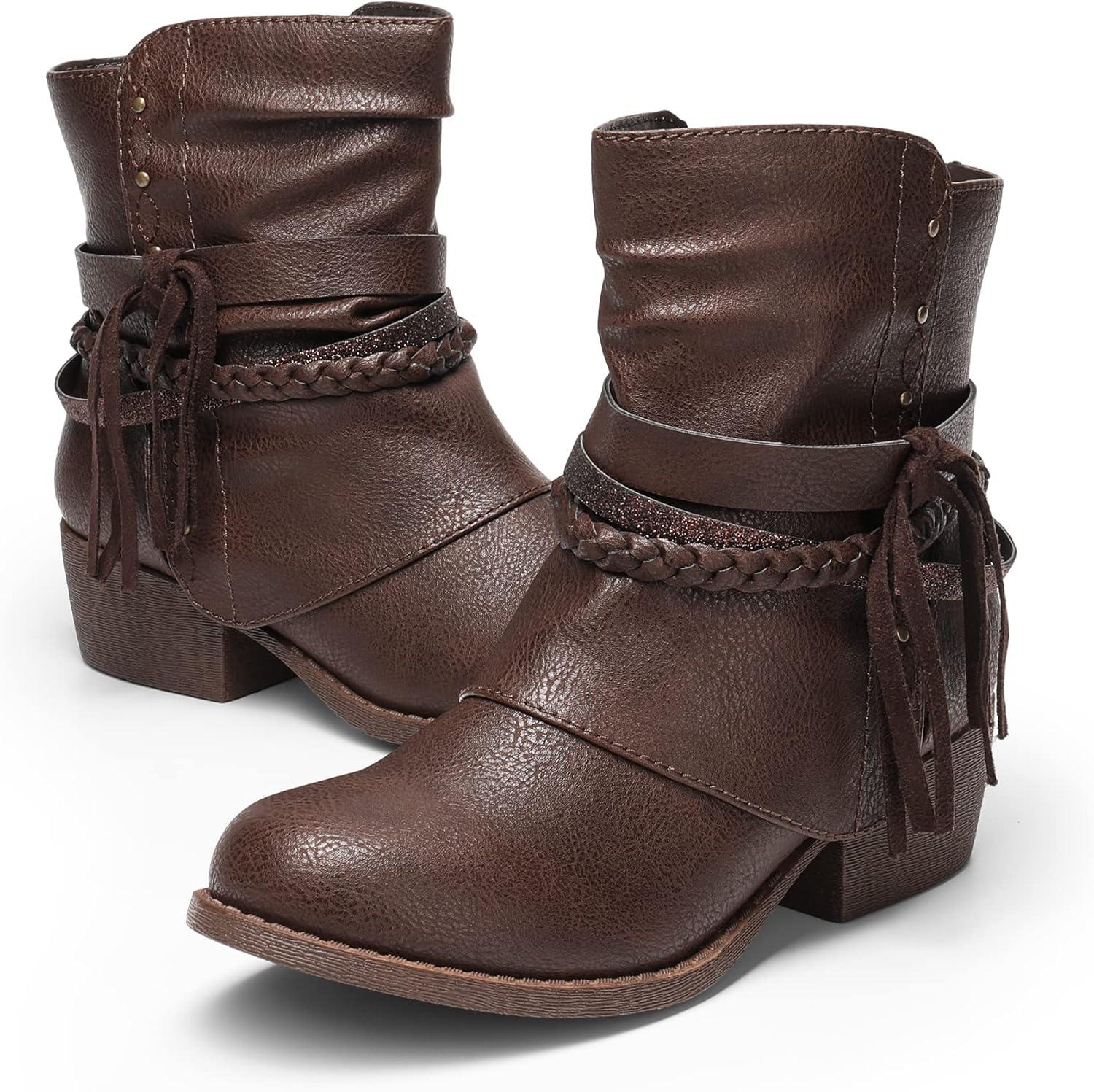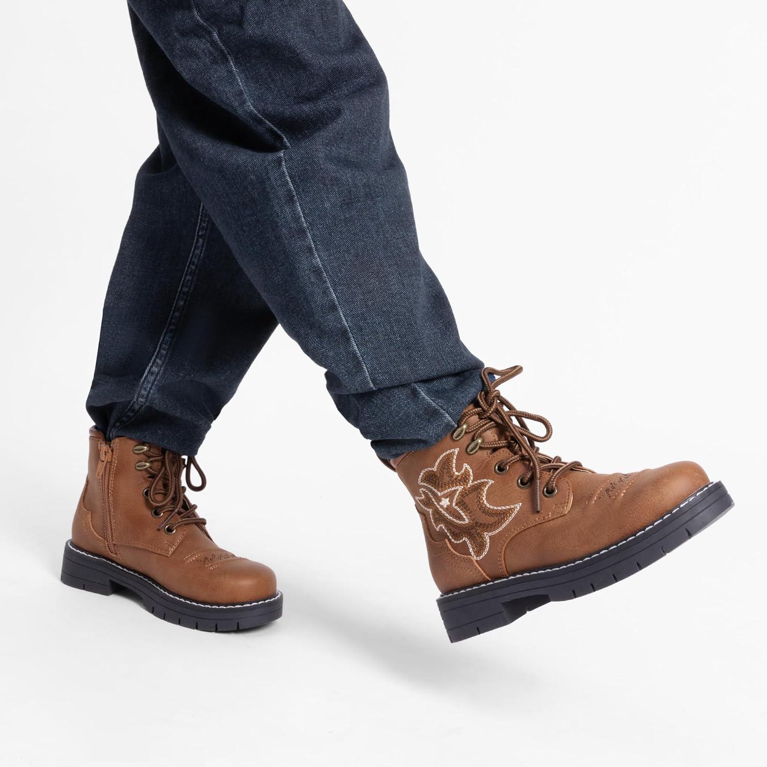 DREAM PAIRS Boys Girls Combat Ankle Boots Cowboy Cowgirl Western Embroidered Side Zipper Booties Toddler/Little Kid/Big Kid(Brown)