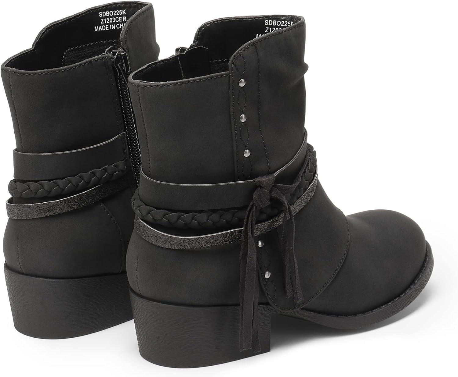 DREAM PAIRS Girls Ankle Boots Side Zipper Low Heels Boots Little Kid/Big Kid(Black)