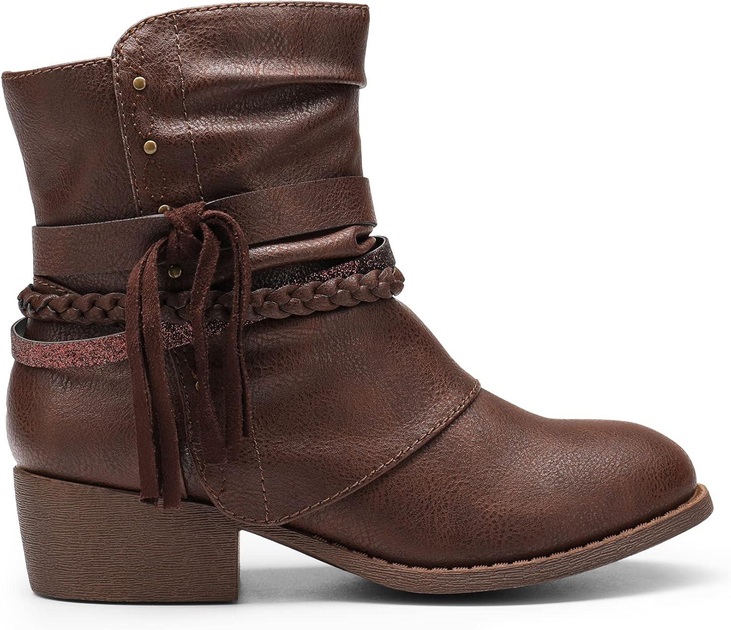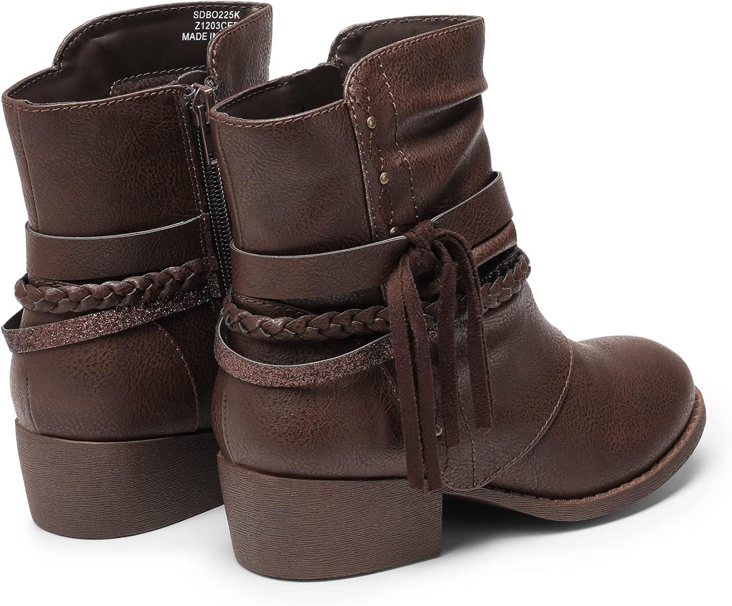 DREAM PAIRS Girls Ankle Boots Side Zipper Low Heels Boots Little Kid/Big Kid(Brown)