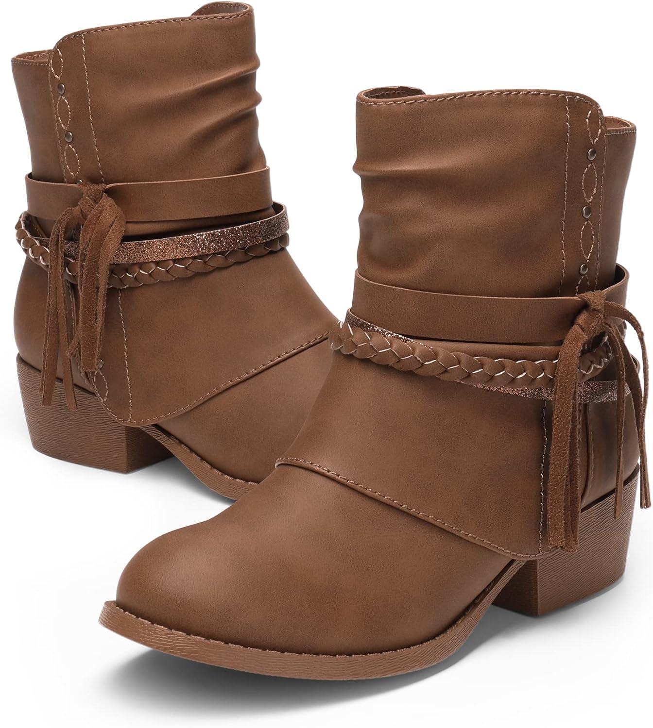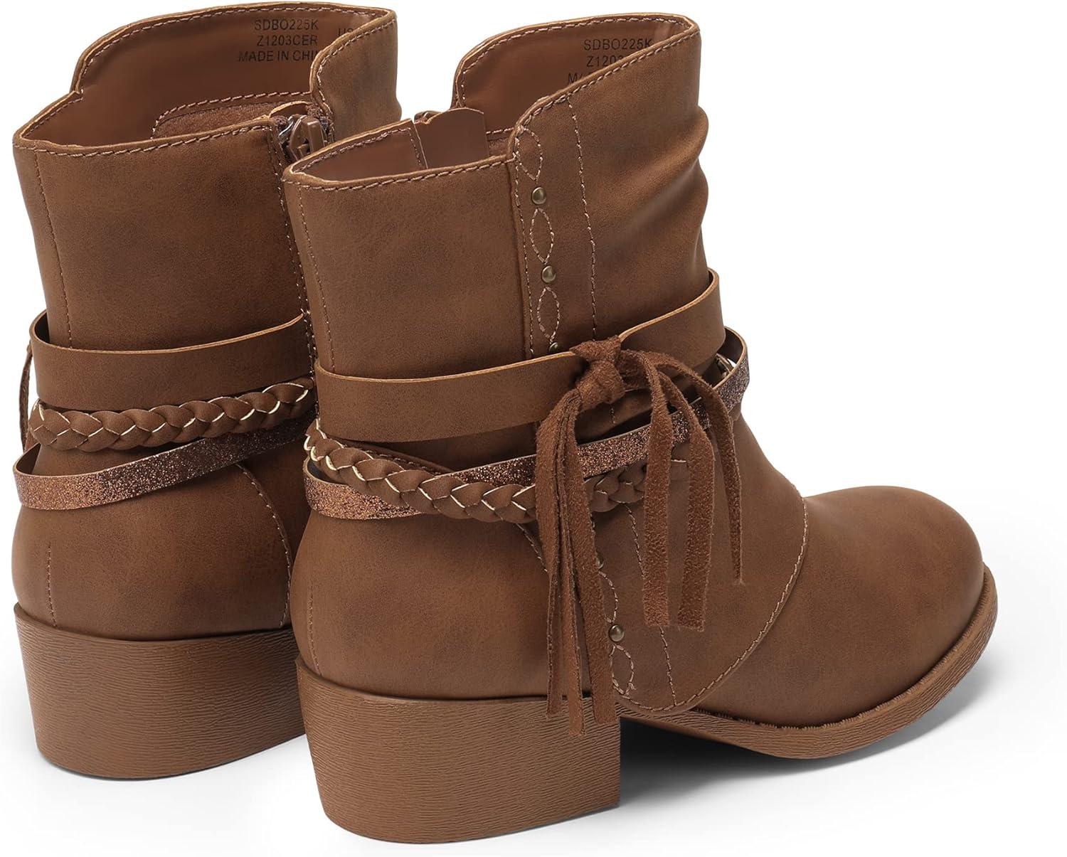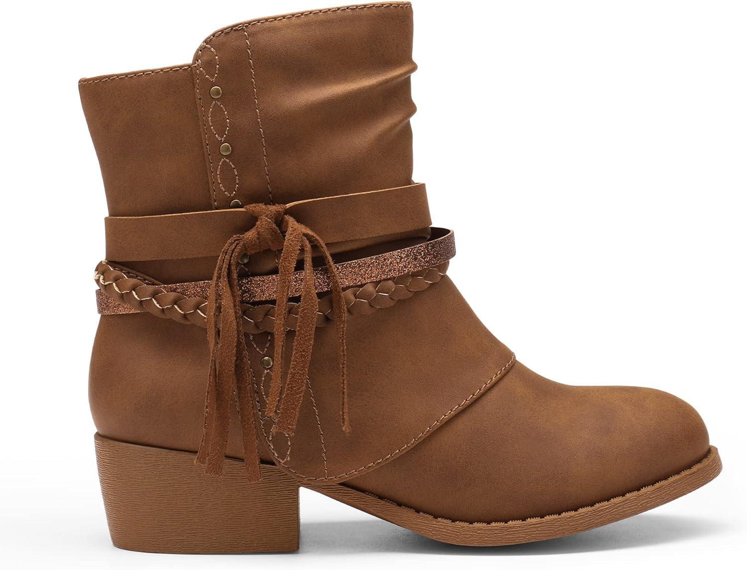 DREAM PAIRS Girls Ankle Boots Side Zipper Low Heels Boots Little Kid/Big Kid(Camel)