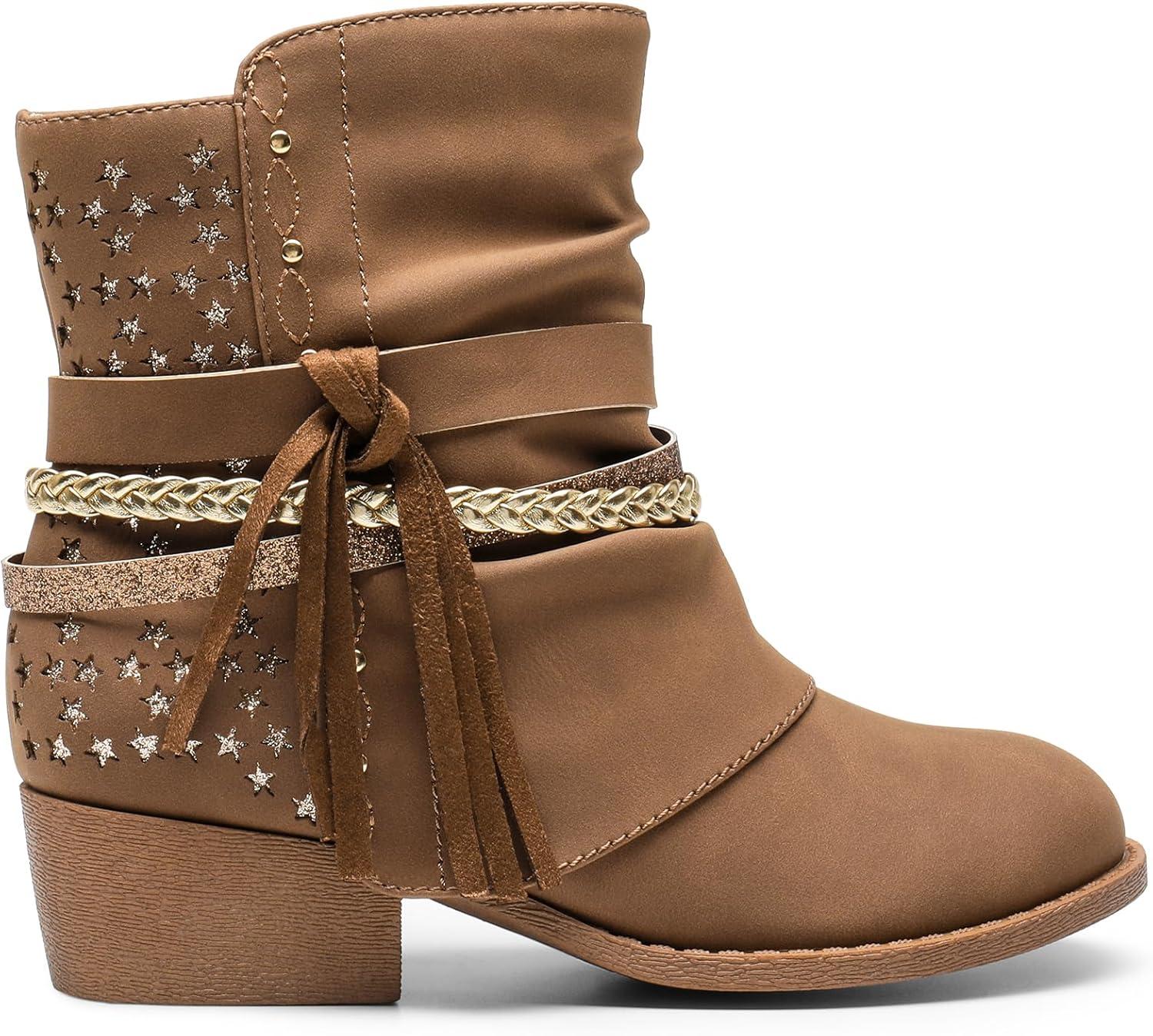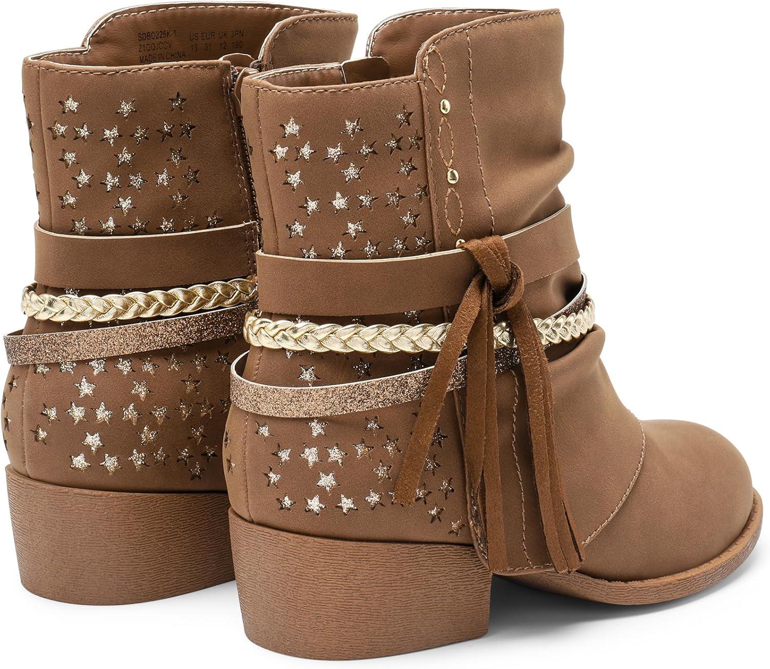 DREAM PAIRS Girls Ankle Boots Side Zipper Low Heels Boots Little Kid/Big Kid(Camel/Gold)