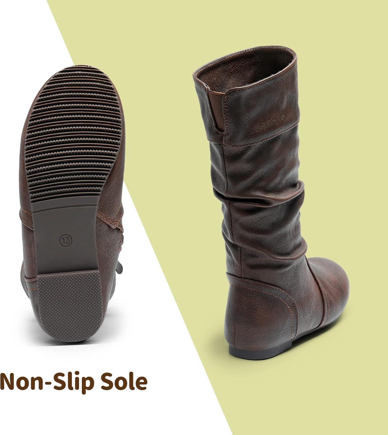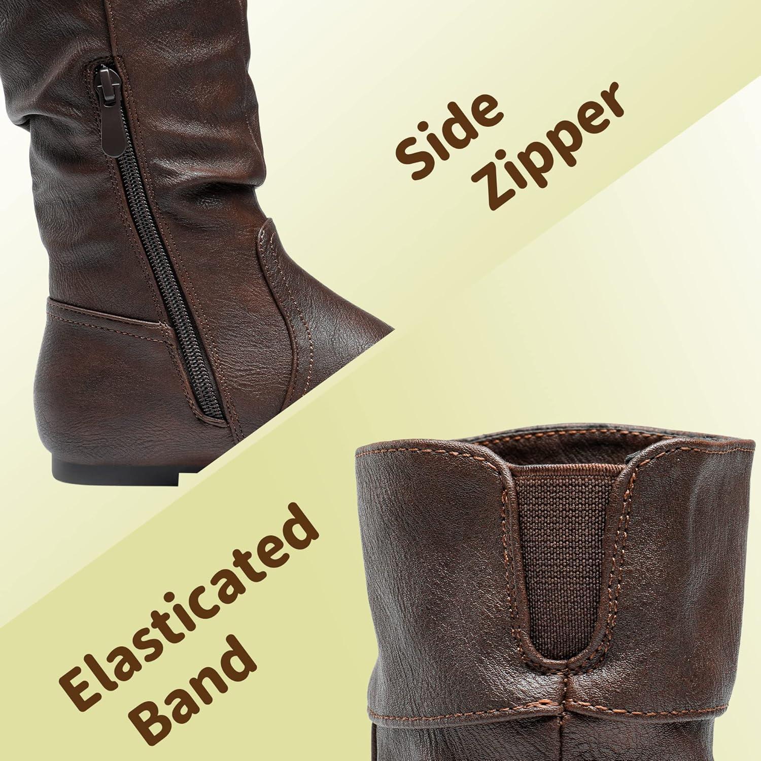 DREAM PAIRS Girl’s Faux Fur Lined Knee High Winter Riding Boots(Toddler/Little Kid/Big Kid)(Brown Pu)