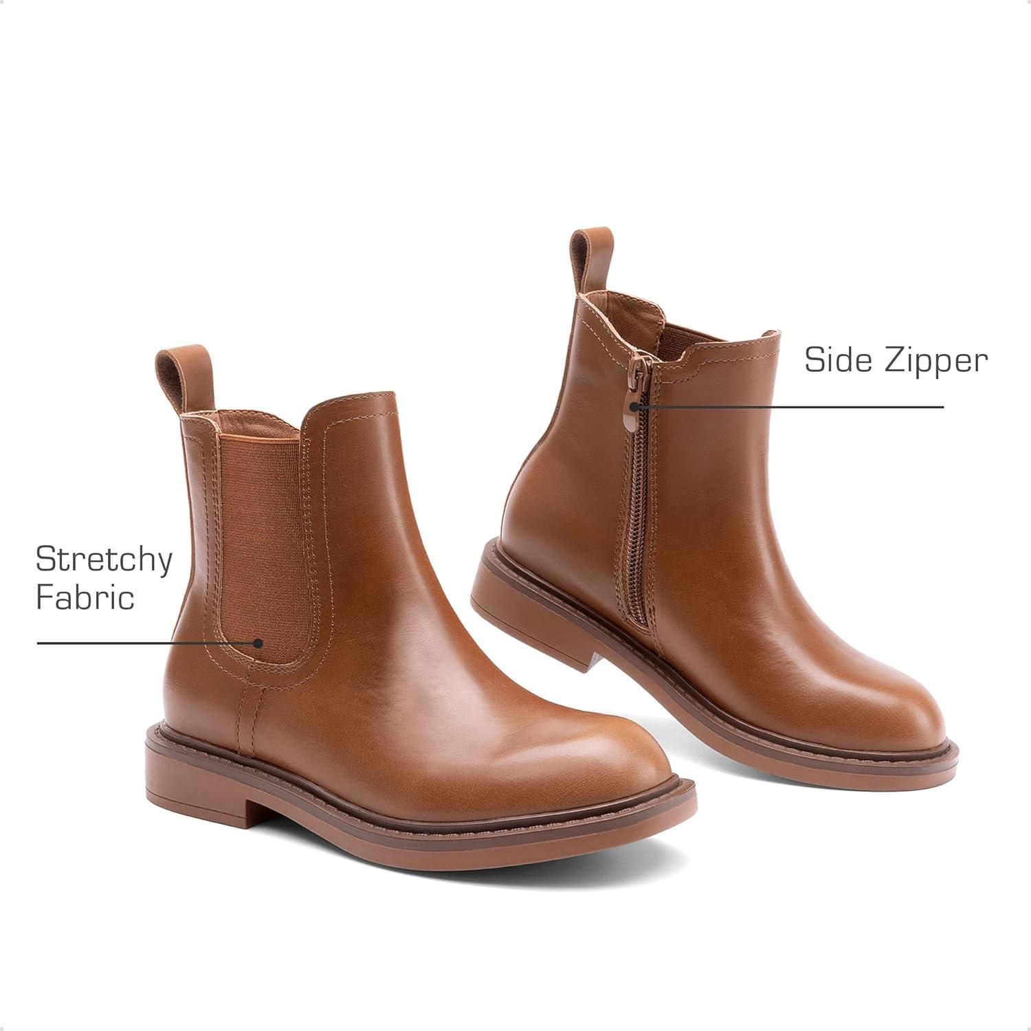 DREAM PAIRS Girls Ankle Boots with Side Zipper Chelsea Booties Low Heels Girl Fashion Shoes for Toddler/Little Kid/Big Kid(Tan)