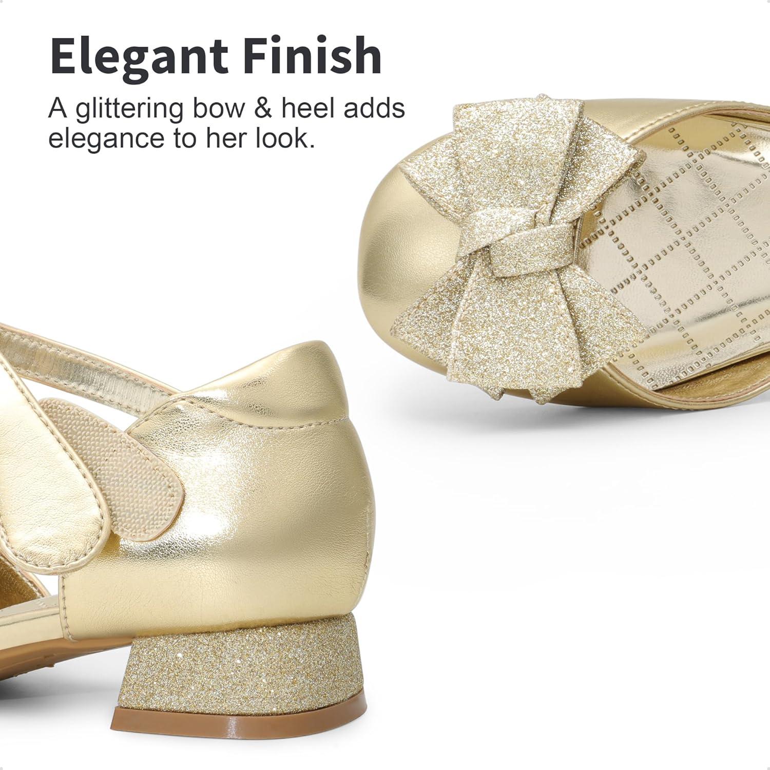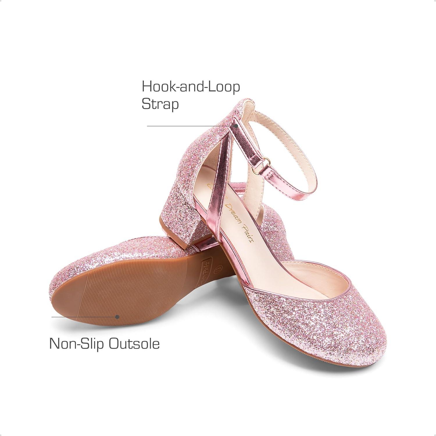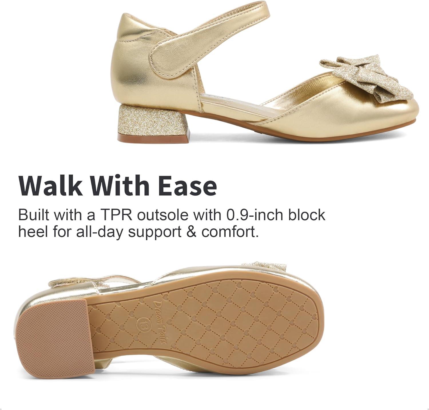 Get your hands on our exclusive DREAM PAIRS Girls Dress Shoes Closed Toe Low Heels Ankle Strap Bow Ballet Wedding Party Sandals Princess Flower Shoes(Gold) collection, now at a discounted price.
