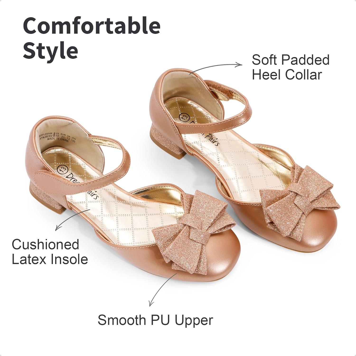 Save big on DREAM PAIRS Girls Dress Shoes Closed Toe Low Heels Ankle Strap Bow Ballet Wedding Party Sandals Princess Flower Shoes(Rose Gold) during our summer blowout sale. Limited quantities available.