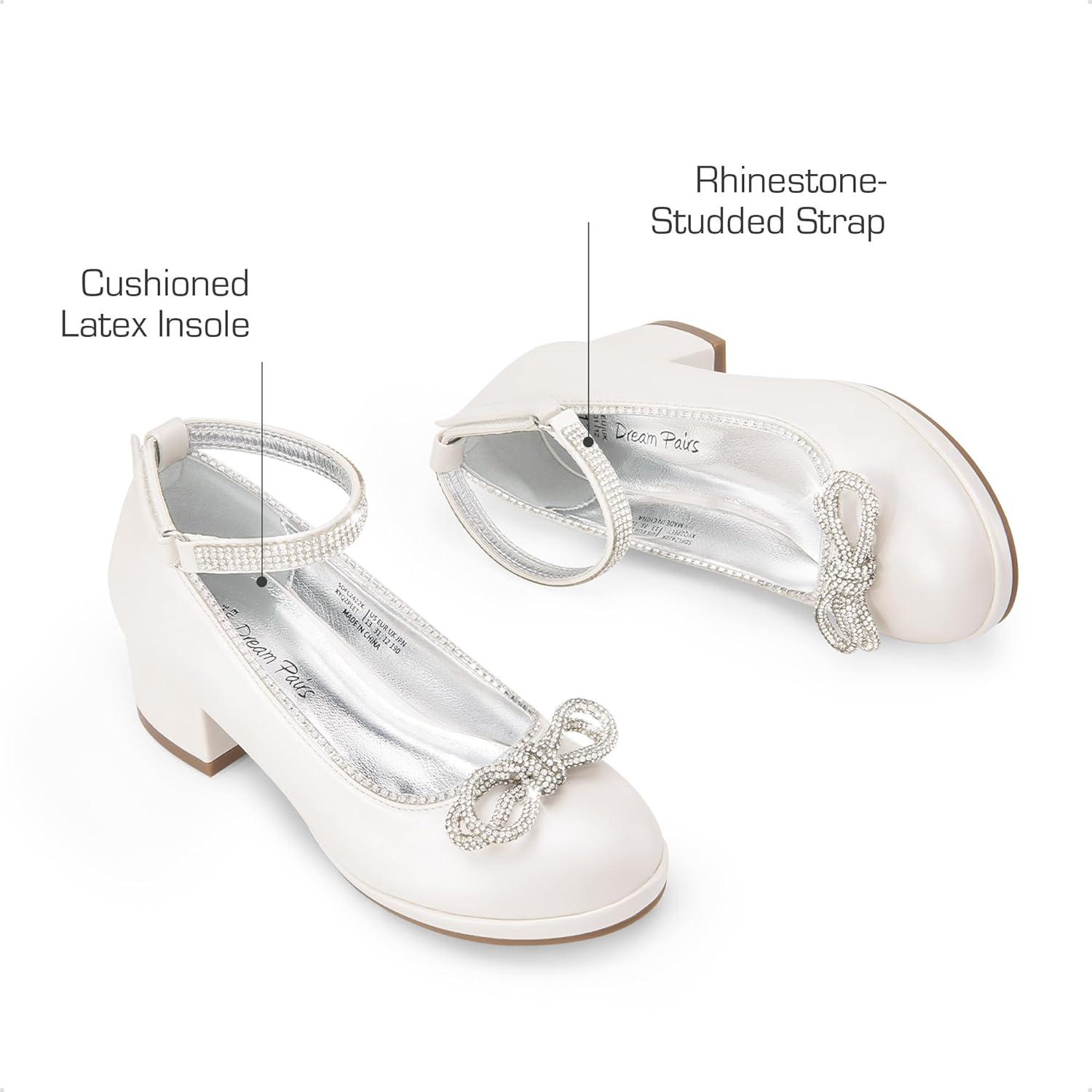 Don't wait, get up to 50% off on DREAM PAIRS Girls Dress Shoes Closed Toe Low Heels Ankle Strap Pumps for Toddler Little Big Kid Flower Party Wedding Princess(White-pu) during our end-of-season sale event.