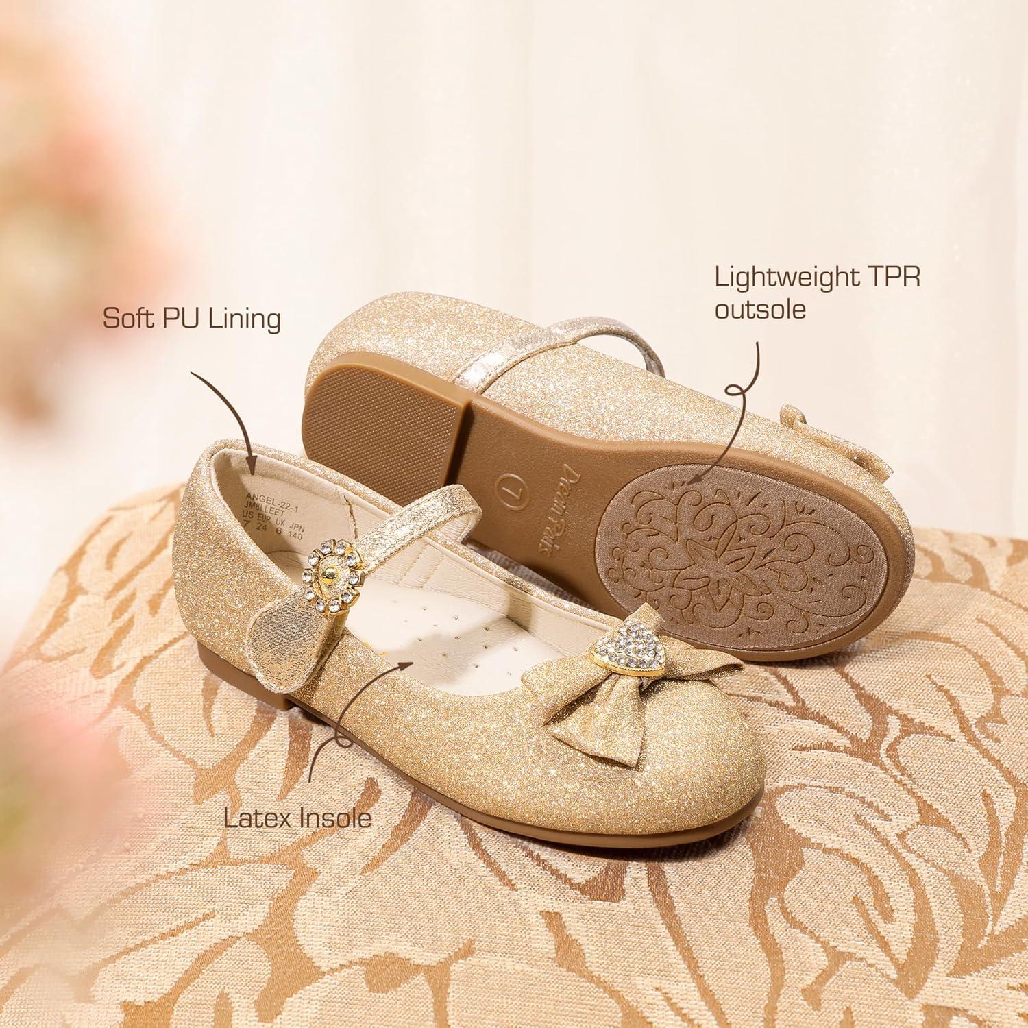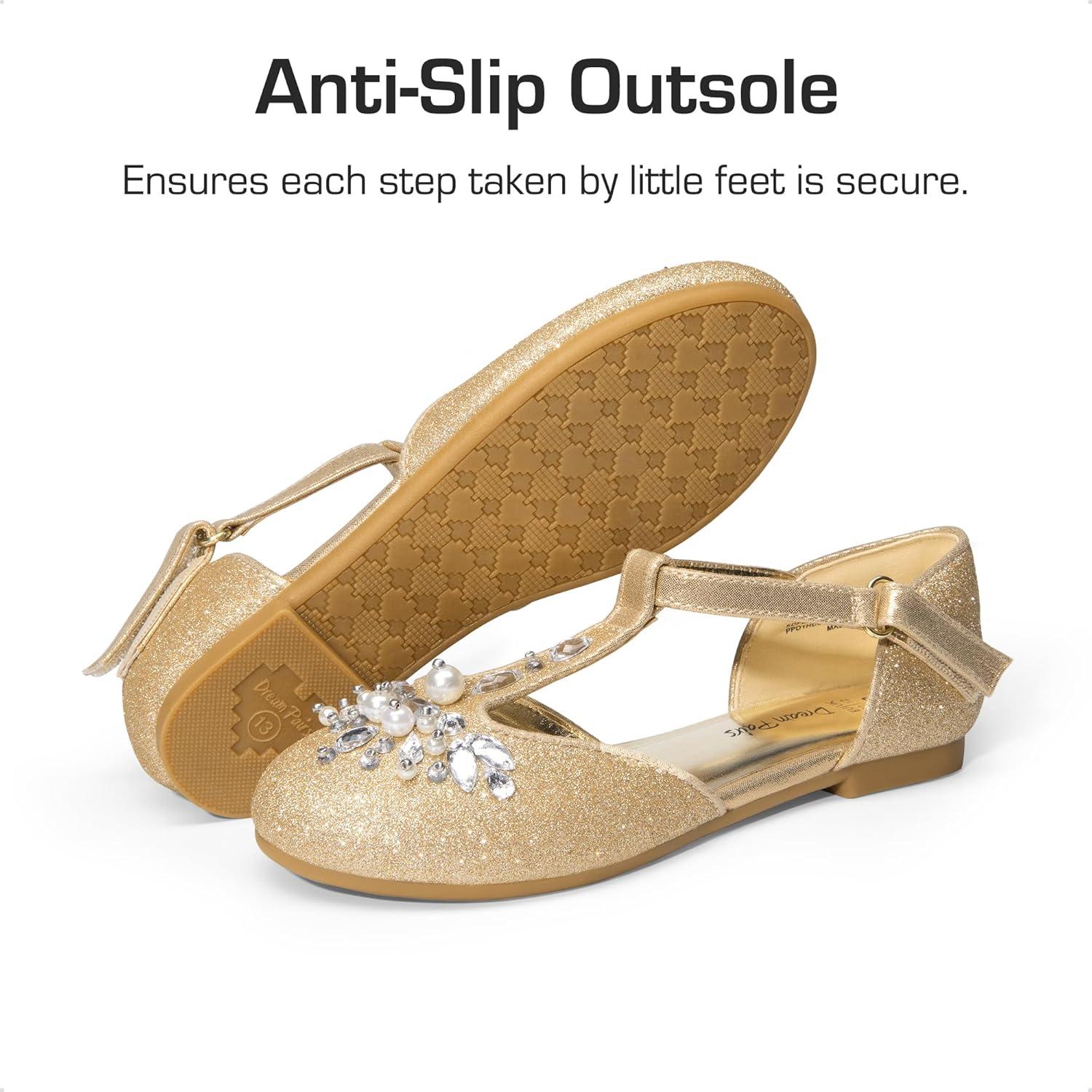 Get the DREAM PAIRS Girls Mary Jane Dress Shoes Pearl T-Strap Party Flower Wedding Princess Flats for Toddler Little Big Kid(Gold) you want at a discounted price during our markdown sale event.