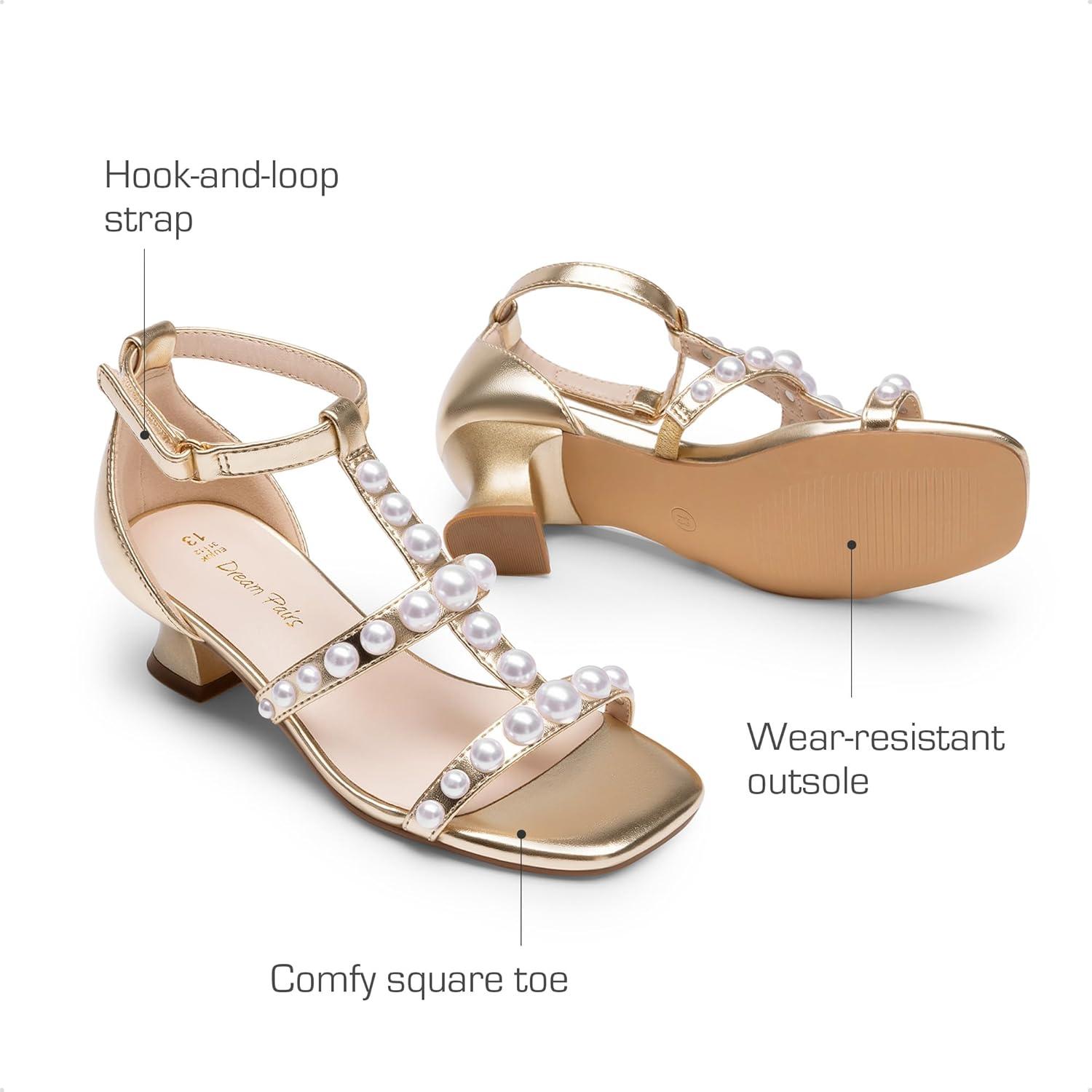 - Score big on DREAM PAIRS Girls Sandals Ankle Strap T-Strap Low Heel Pearl Flower Pump Dress Wedding Party Square Toe Shoes for Little Kid/Big Kid(Silver) and accessories during our BOGO sale. Buy one, get one 50% off!