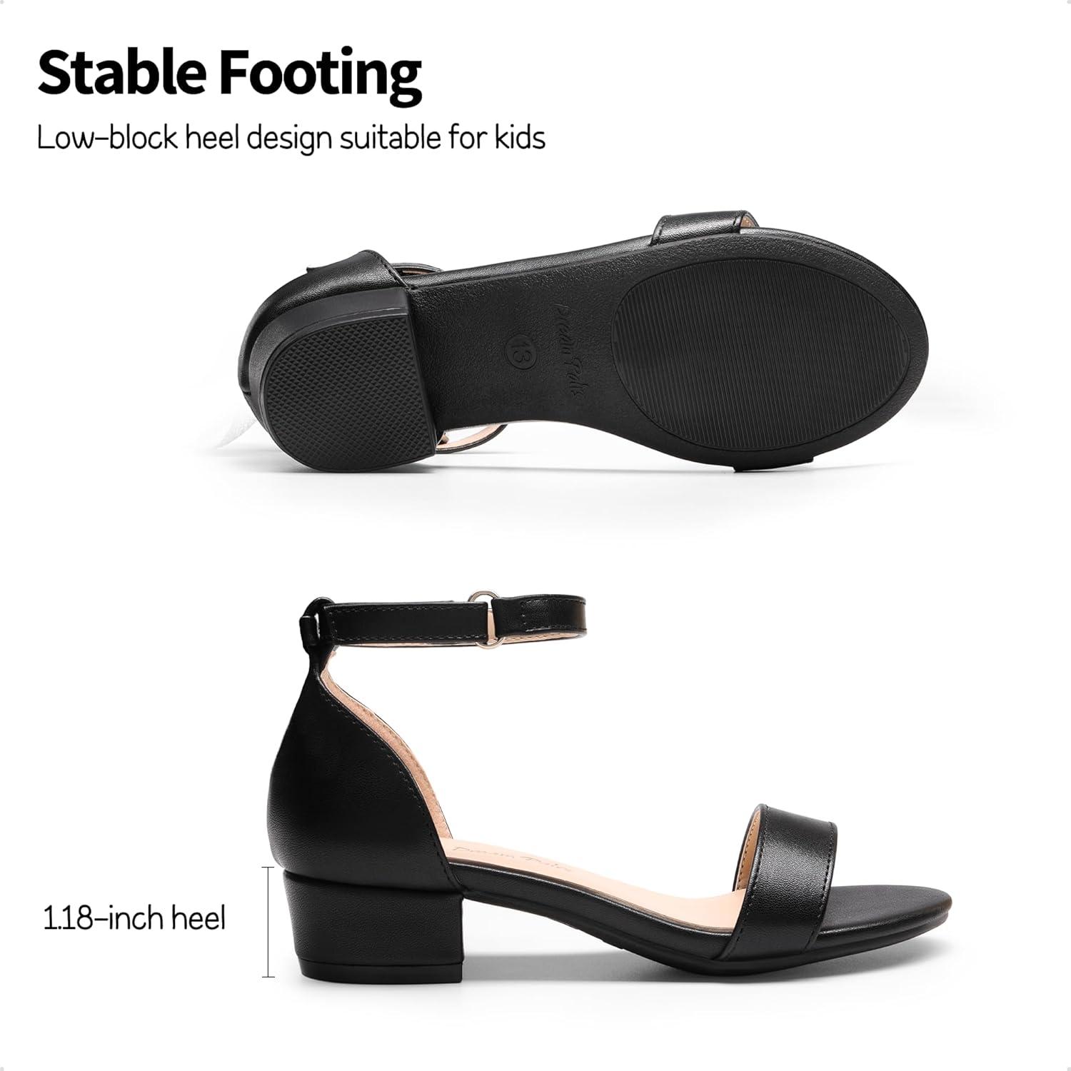 DREAM PAIRS Girls Sandals Low Heel Dress Pump Ankle Strap Interchangeable Bow Flower Wedding Party Shoes for Little Kid/Big Kid(Black)