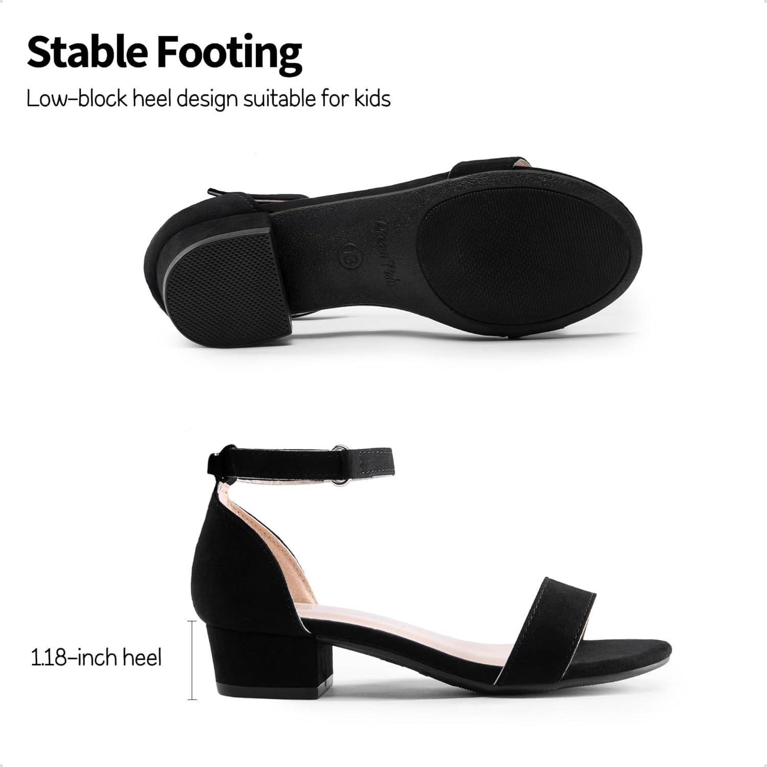 DREAM PAIRS Girls Sandals Low Heel Dress Pump Ankle Strap Interchangeable Bow Flower Wedding Party Shoes for Little Kid/Big Kid(Black-suede)
