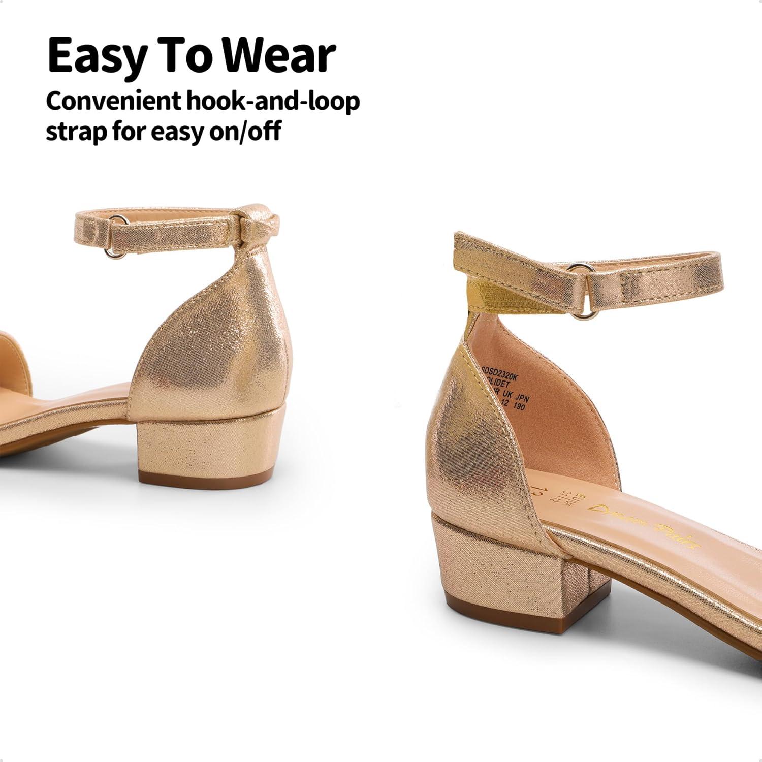 DREAM PAIRS Girls Sandals Low Heel Dress Pump Ankle Strap Interchangeable Bow Flower Wedding Party Shoes for Little Kid/Big Kid(Gold-glitter)
