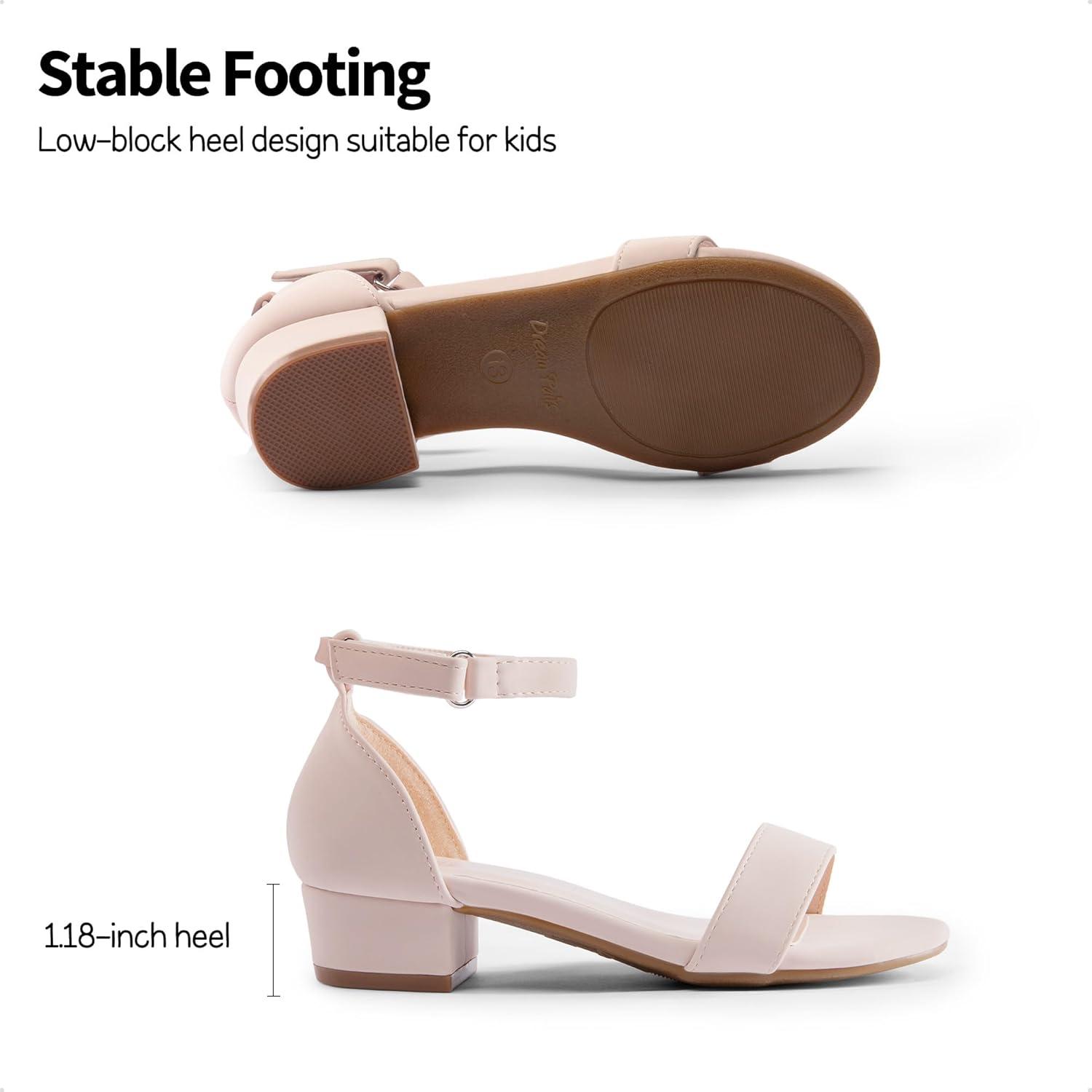 DREAM PAIRS Girls Sandals Low Heel Dress Pump Ankle Strap Interchangeable Bow Flower Wedding Party Shoes for Little Kid/Big Kid(Nude)