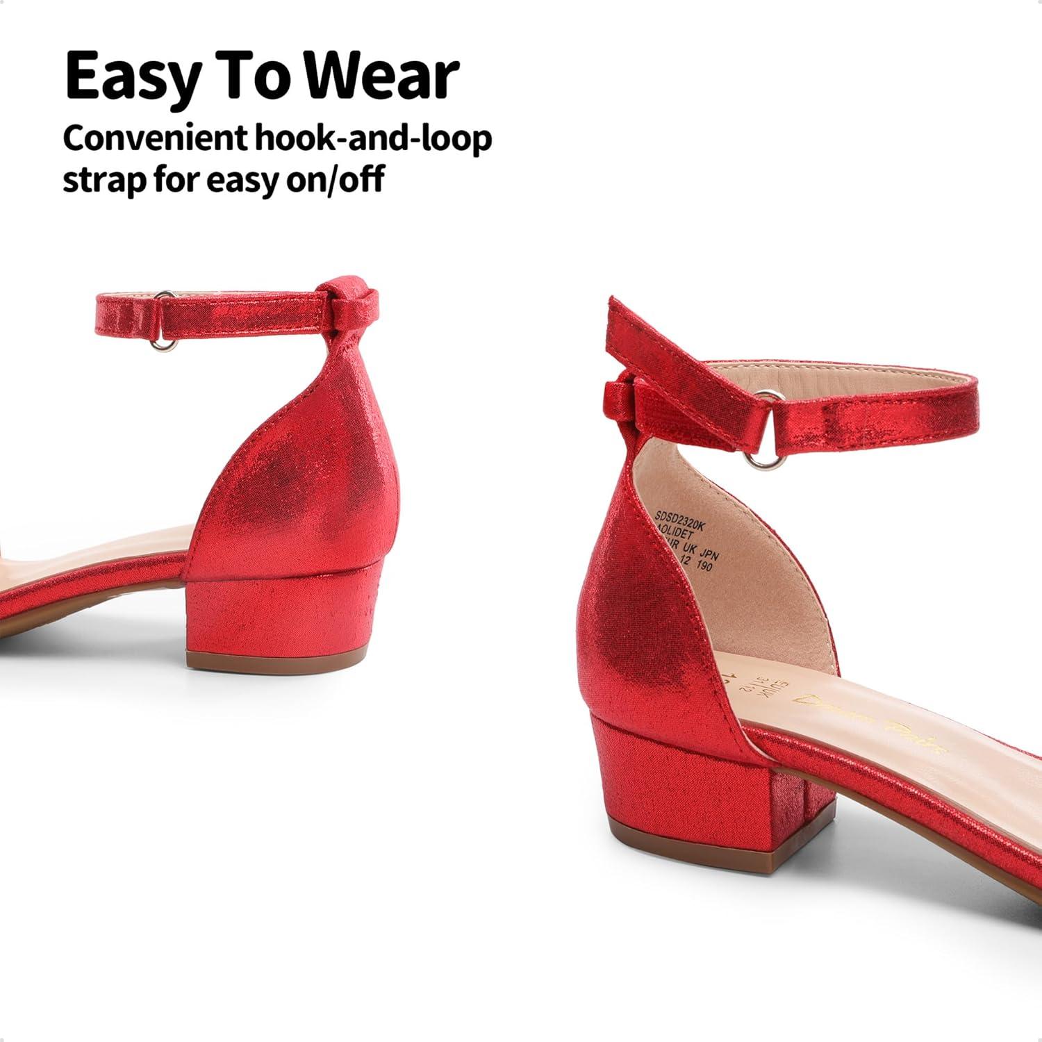 DREAM PAIRS Girls Sandals Low Heel Dress Pump Ankle Strap Interchangeable Bow Flower Wedding Party Shoes for Little Kid/Big Kid(Red)