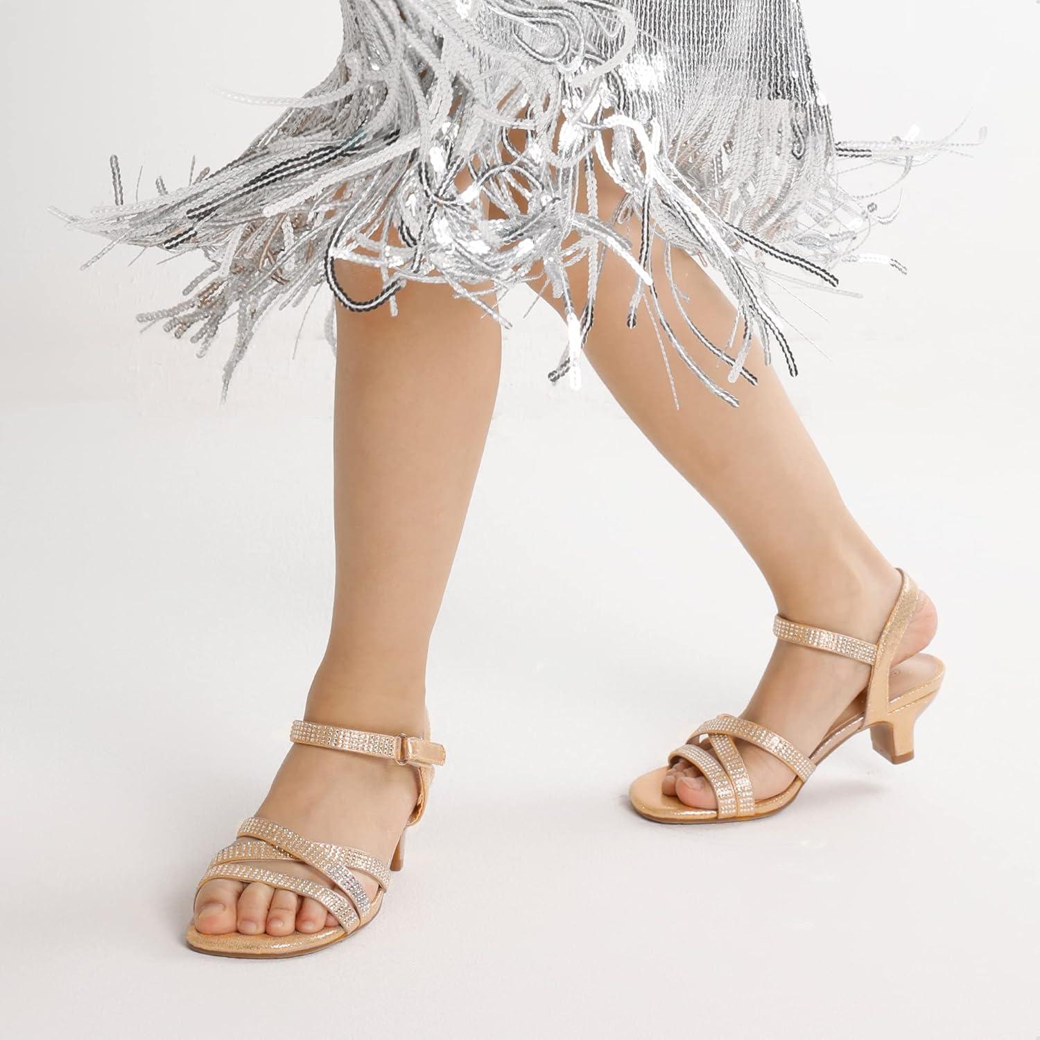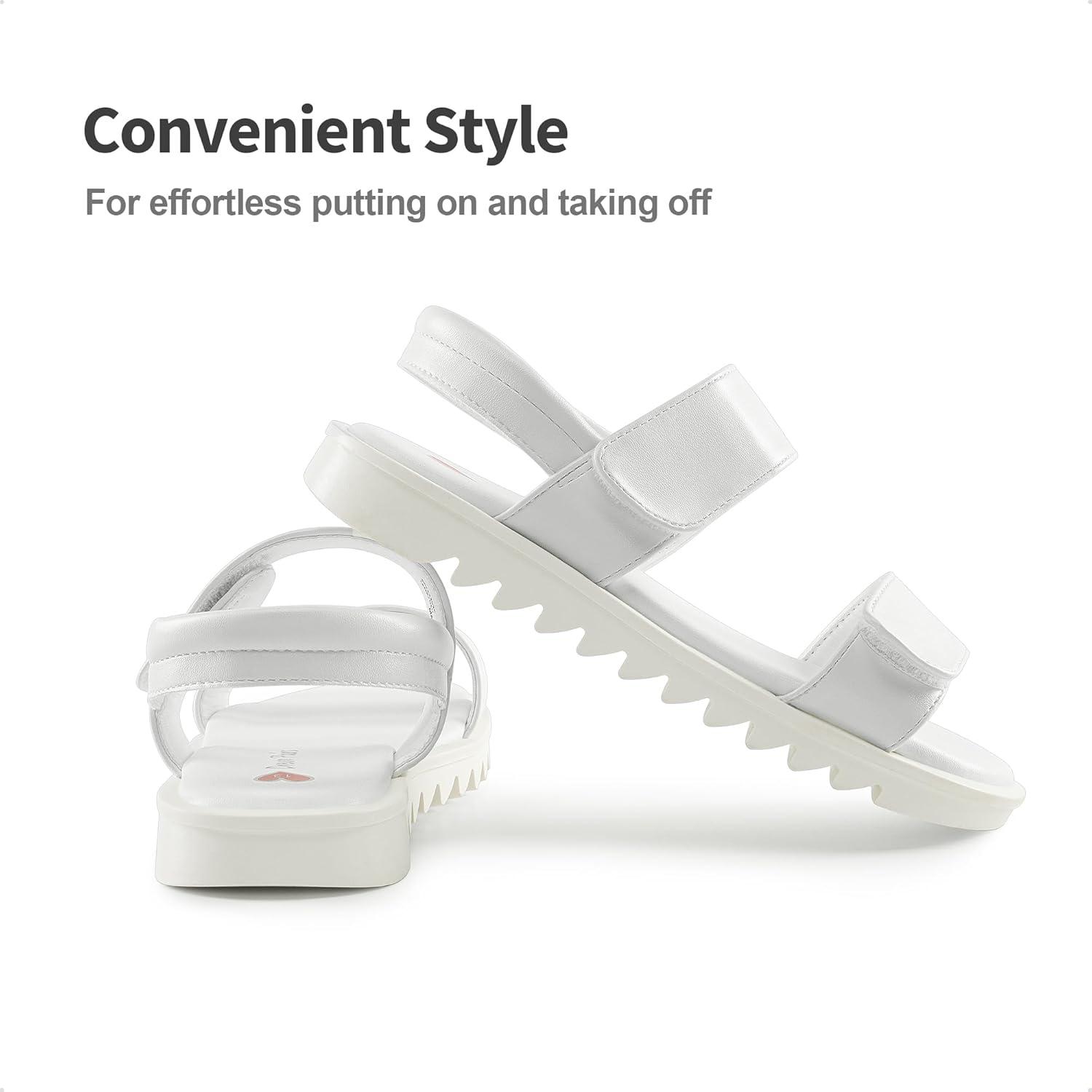 DREAM PAIRS Girls Sandals Glitter Two Strapped Casual Open Toe Sandals Little Kid/Big Kid(White-pu)