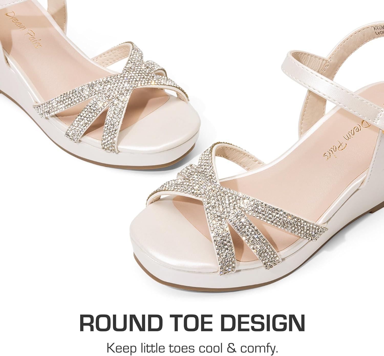 DREAM PAIRS Girls Wedge Sandals Flatform Open Toe Summer Platform Sandals Flower Wedding Party for Little Kid/Big Kid(Ivory)