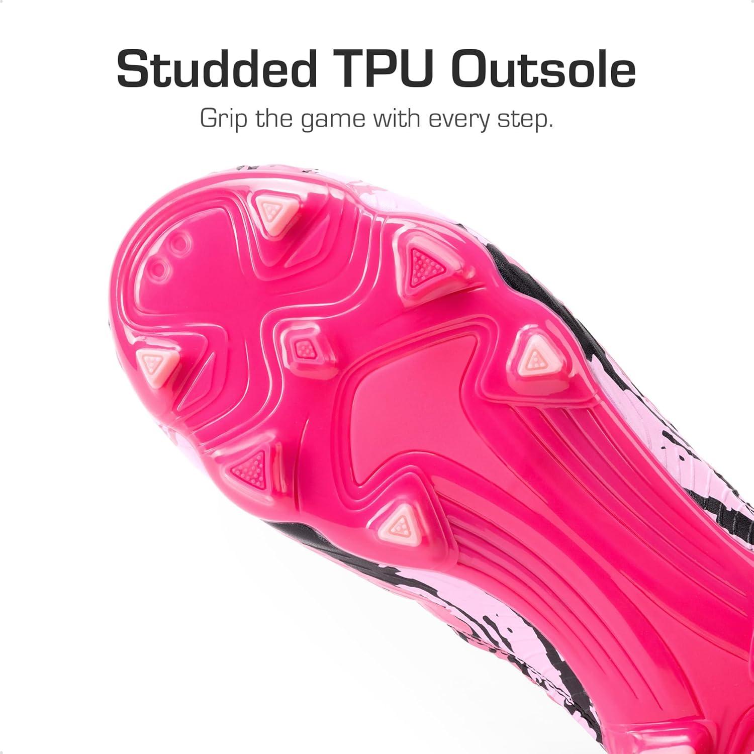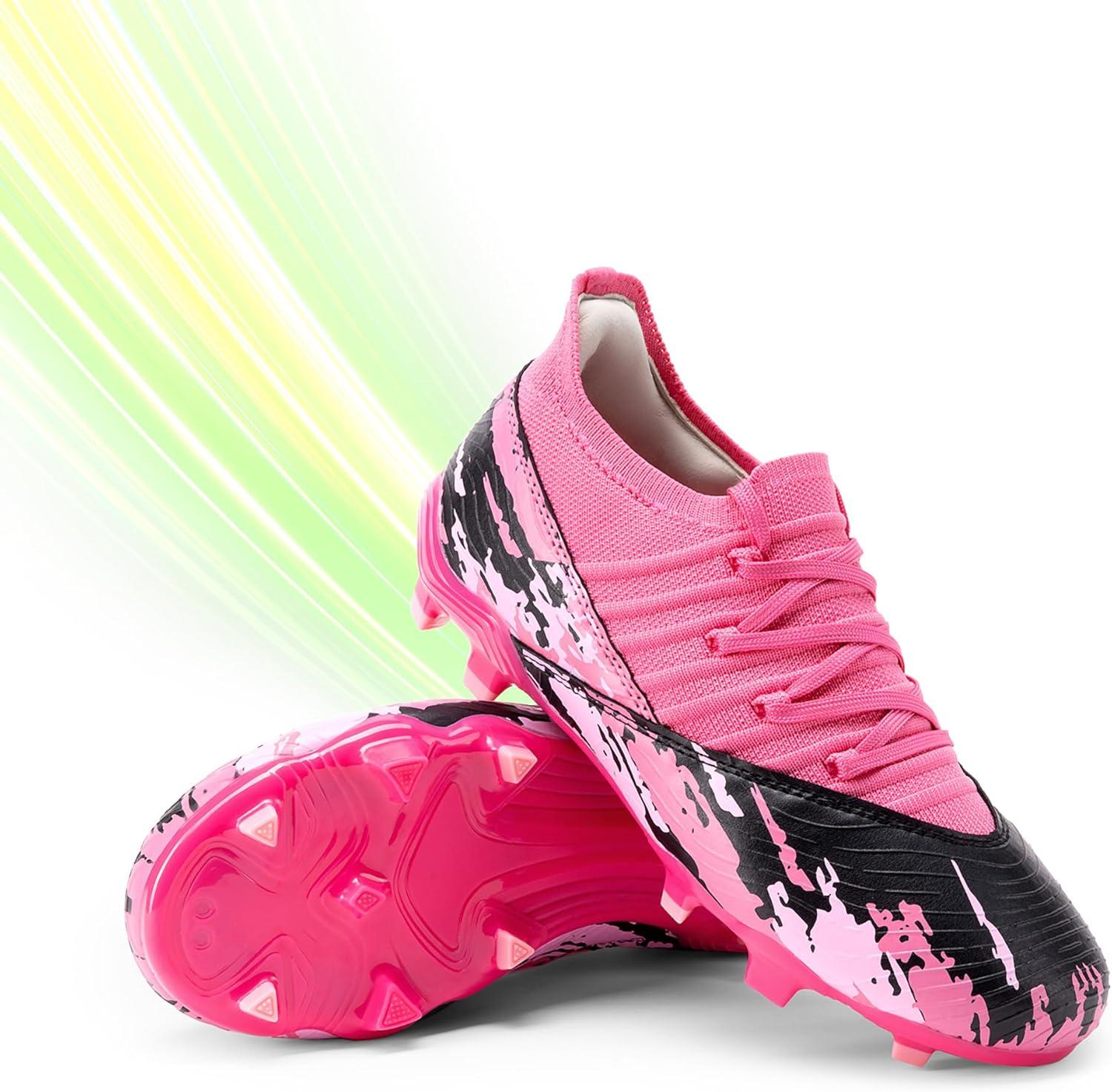 DREAM PAIRS Girls Boys Soccer Cleats Youth Firm Groud Outdoor Sports Athletic Mid-top Football Shoes for Little/Big Kid(Hot Pink/Black)