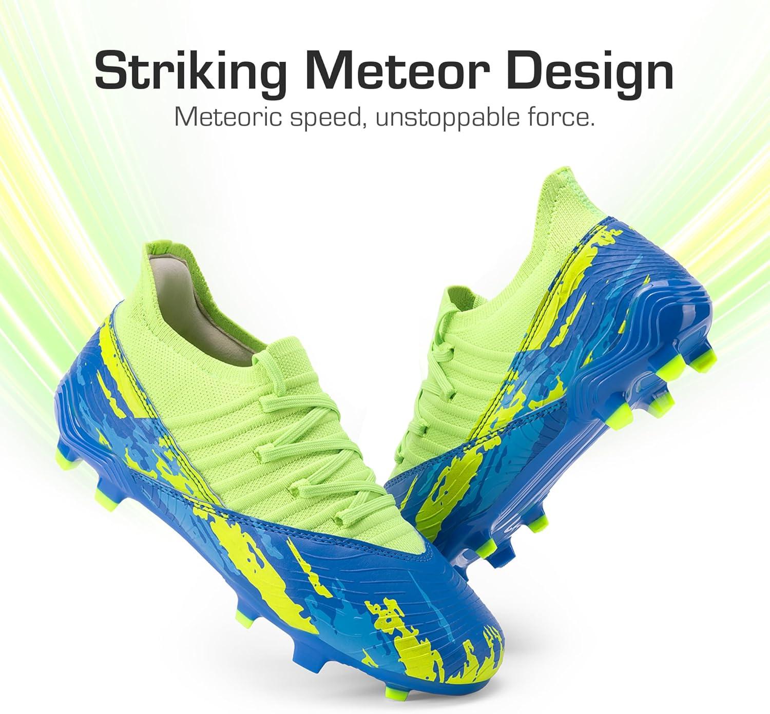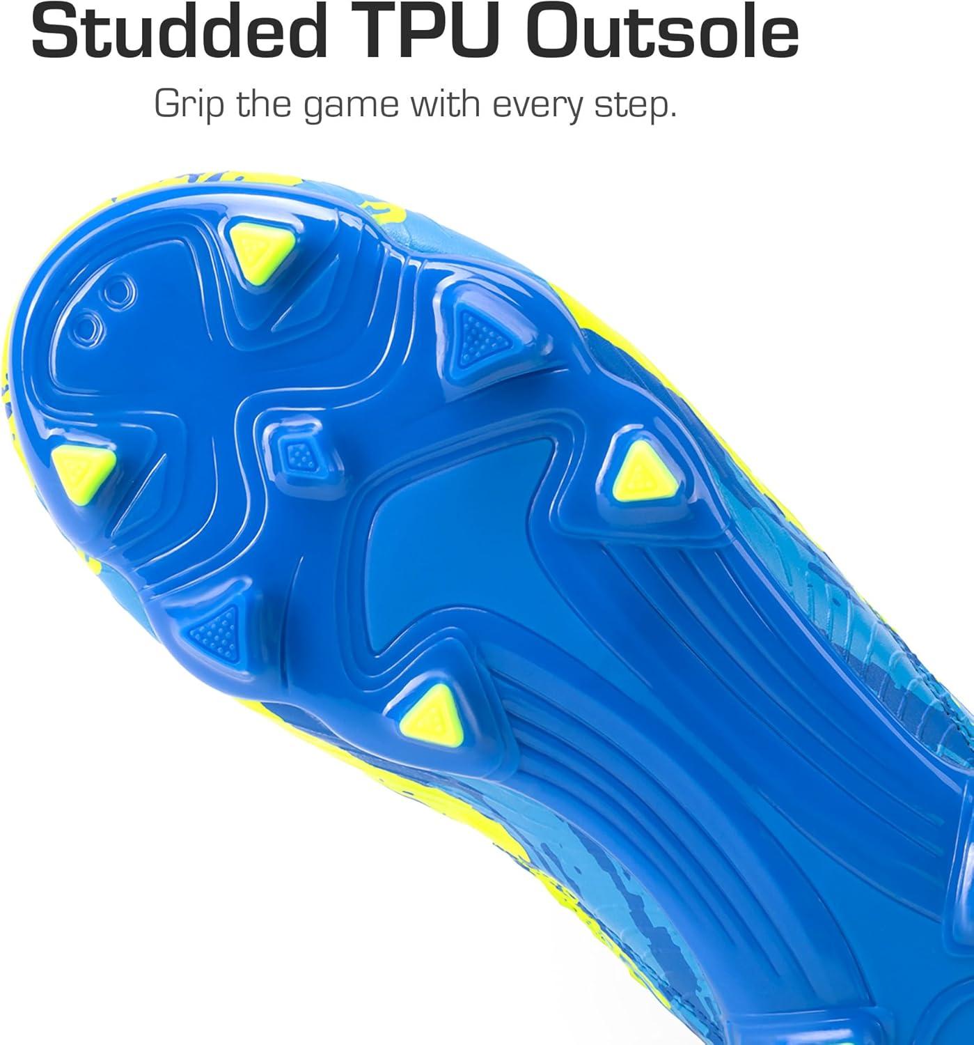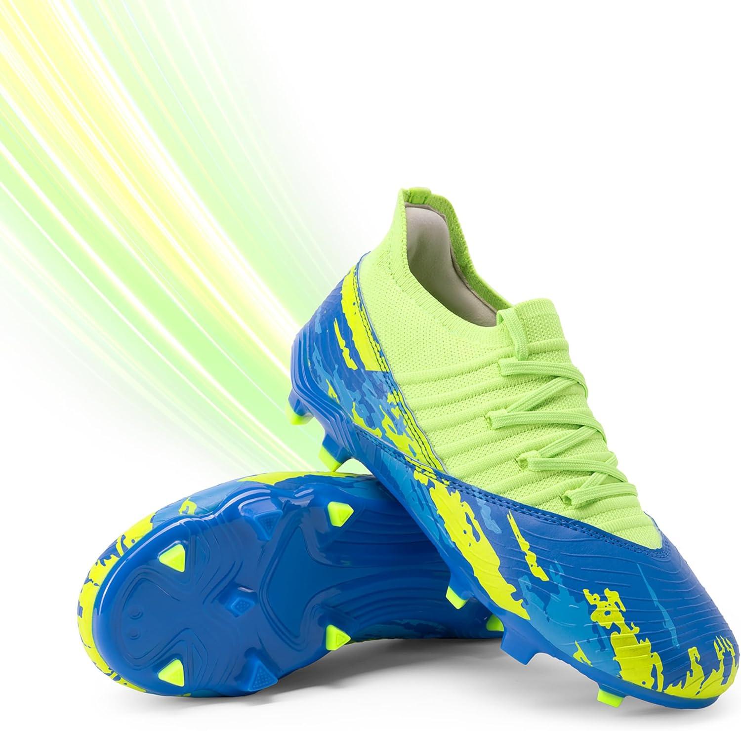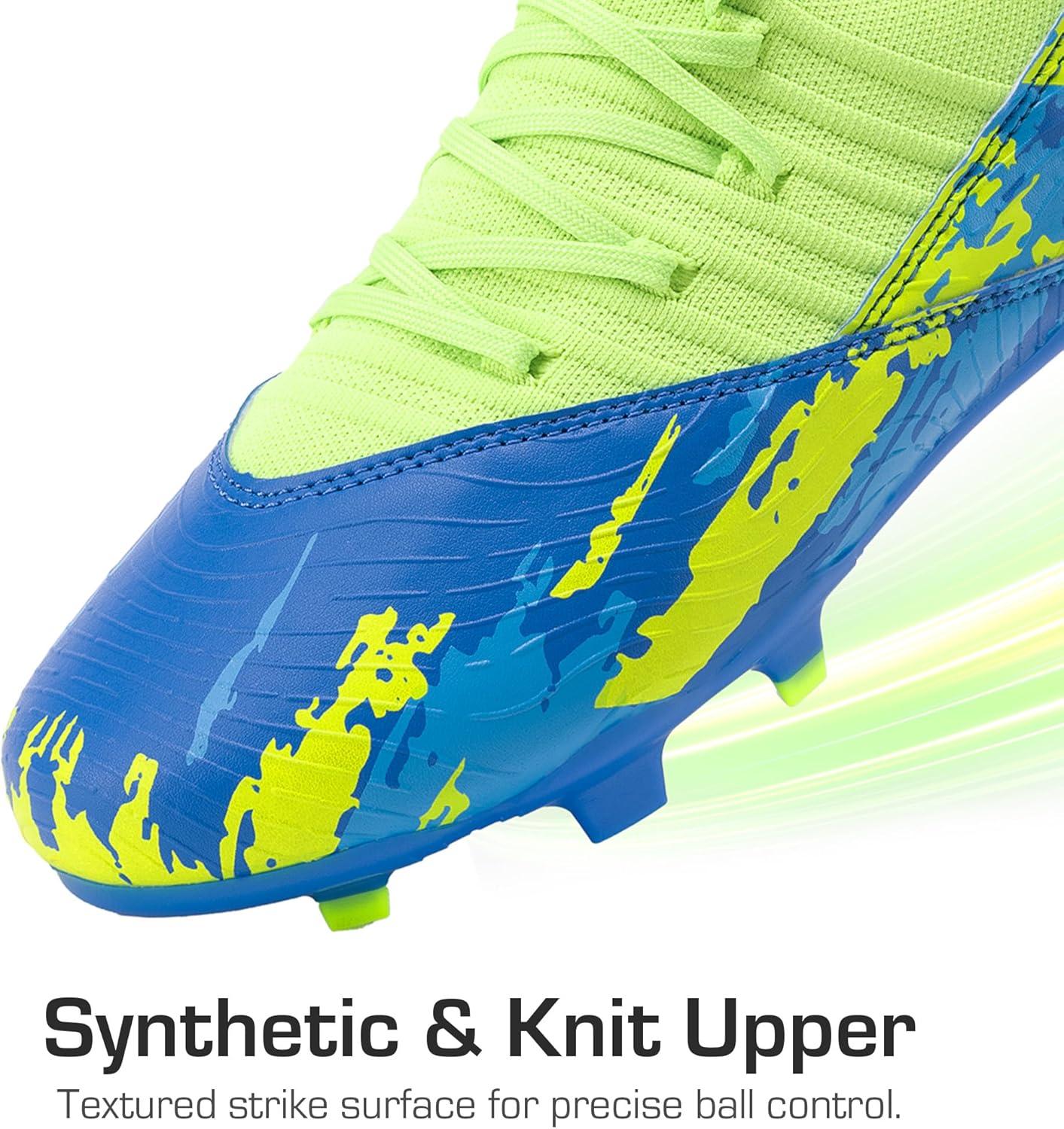 DREAM PAIRS Girls Boys Soccer Cleats Youth Firm Groud Outdoor Sports Athletic Mid-top Football Shoes for Little/Big Kid(Royal Blue/Neon Green)