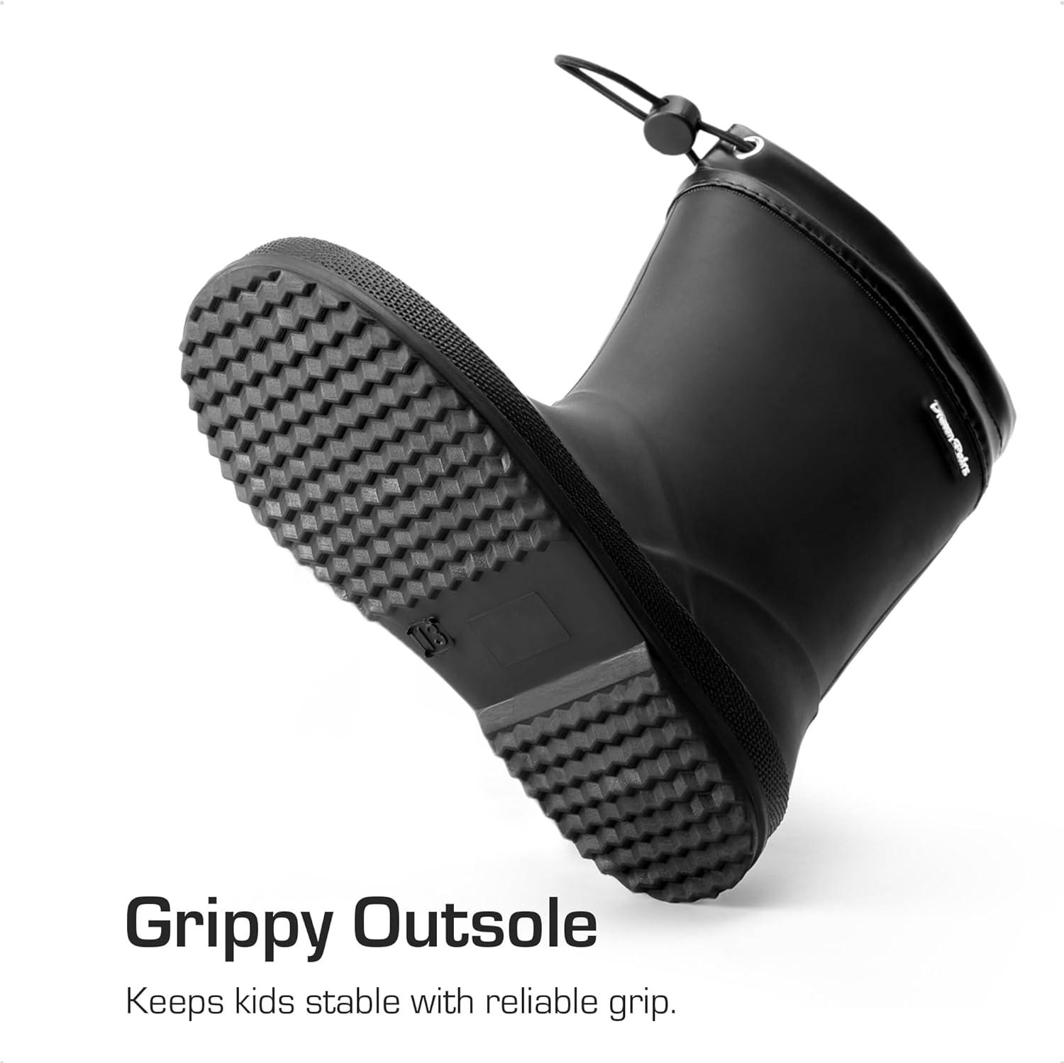 DREAM PAIRS Kids Rain Boots Boys Girls Lightweight Boots Waterproof Easy-on Outdoor Playing Rain Boot Unisex-Child(All Black)